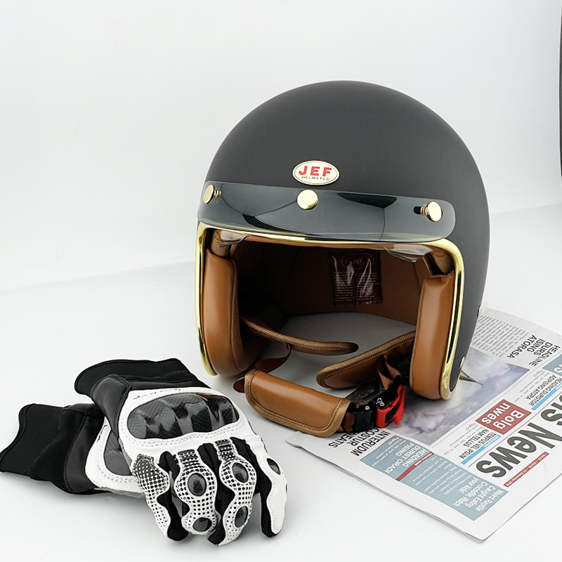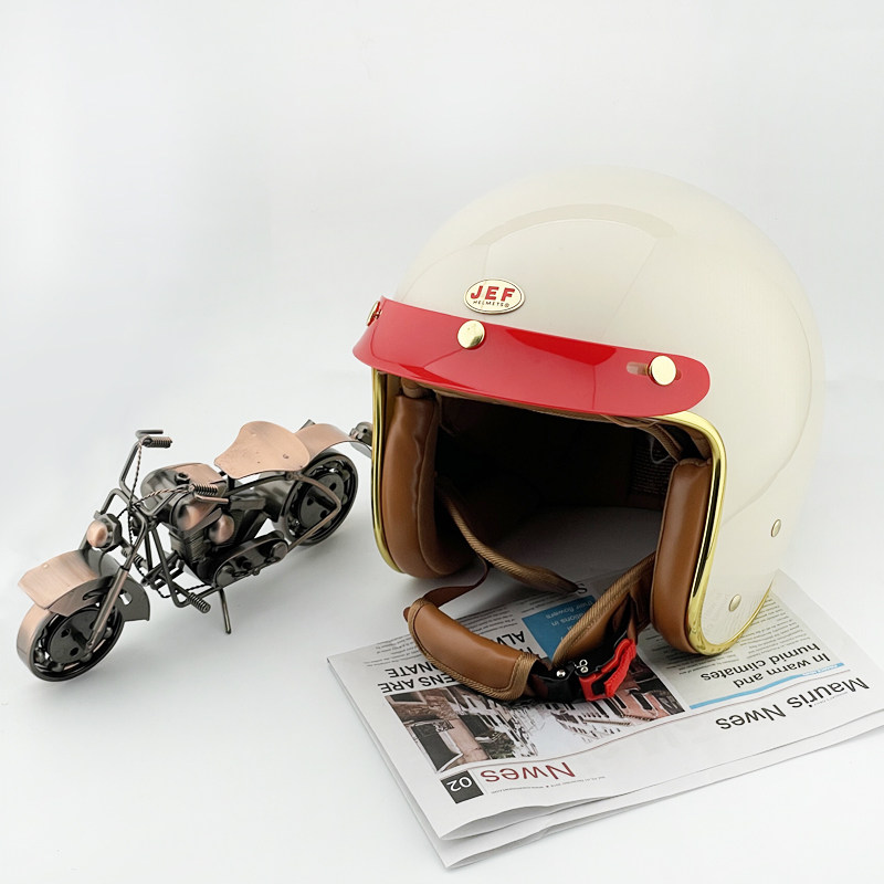 📚 头盔短帽檐复古机车半盔加装三扣式帽舌小盔体四分之三盔通用帽沿