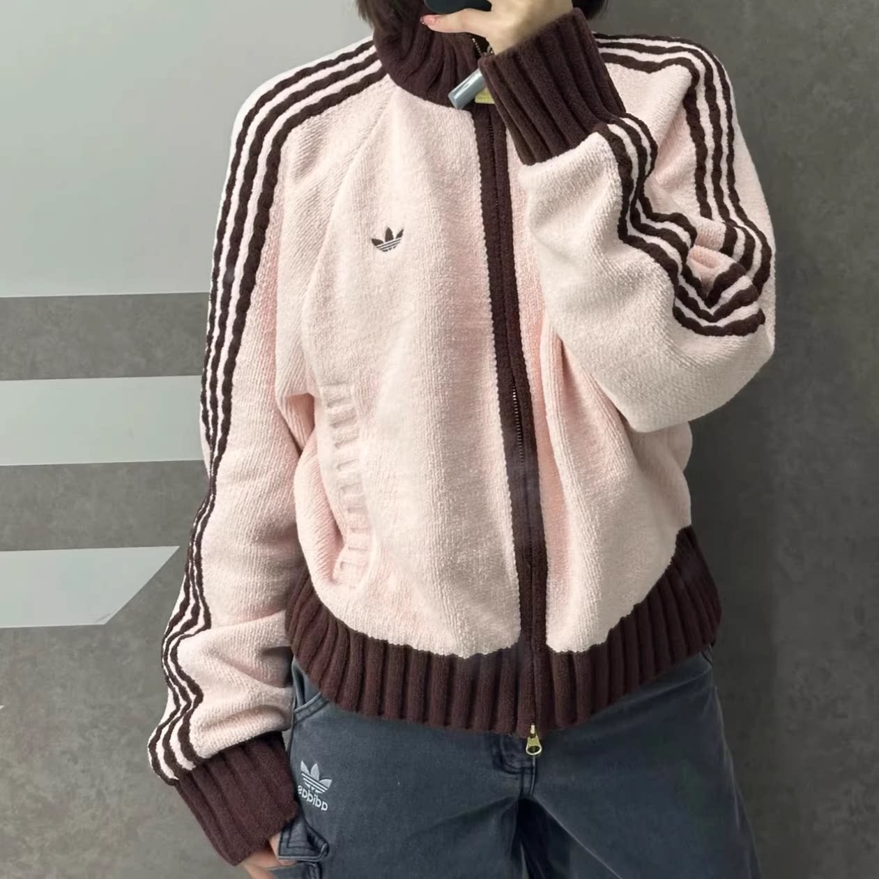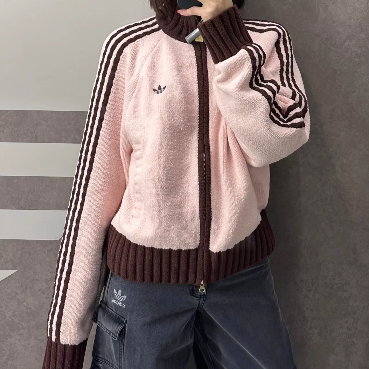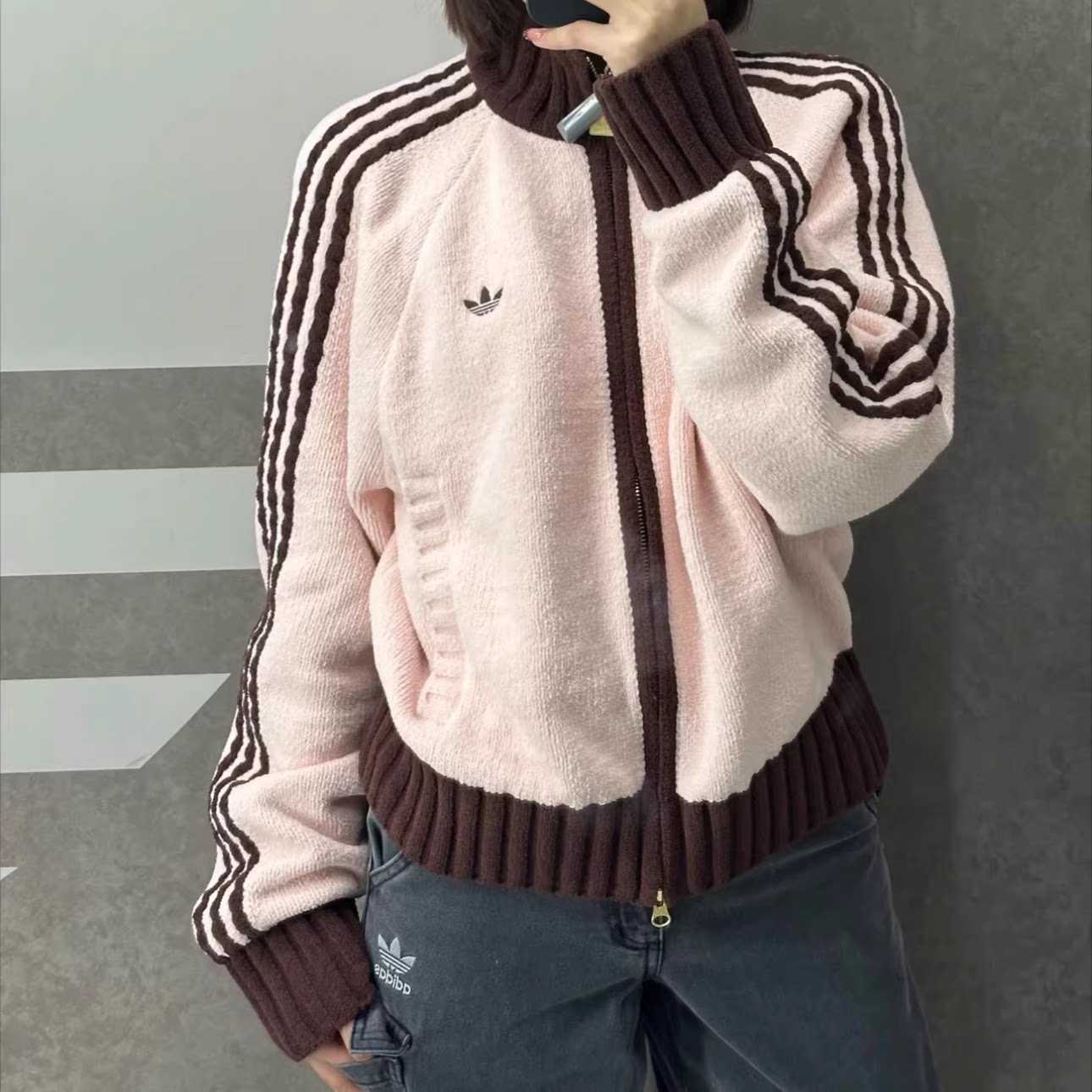 📚 阿迪达斯三叶草外套女复古三条杠立领针织毛衣上衣 KV8866 KV8867
