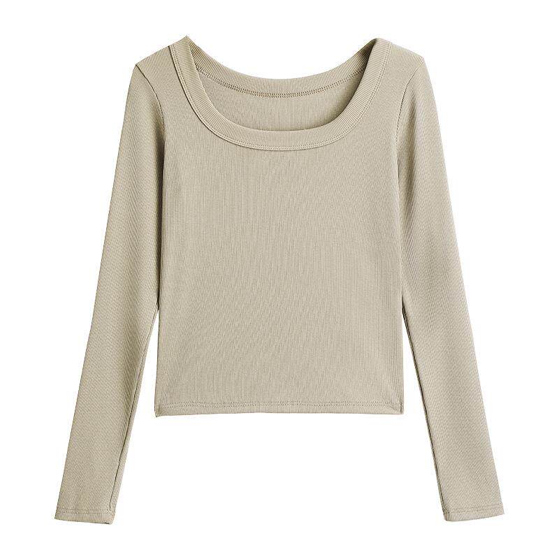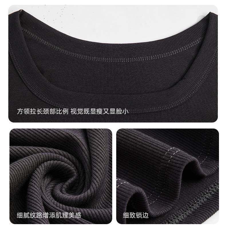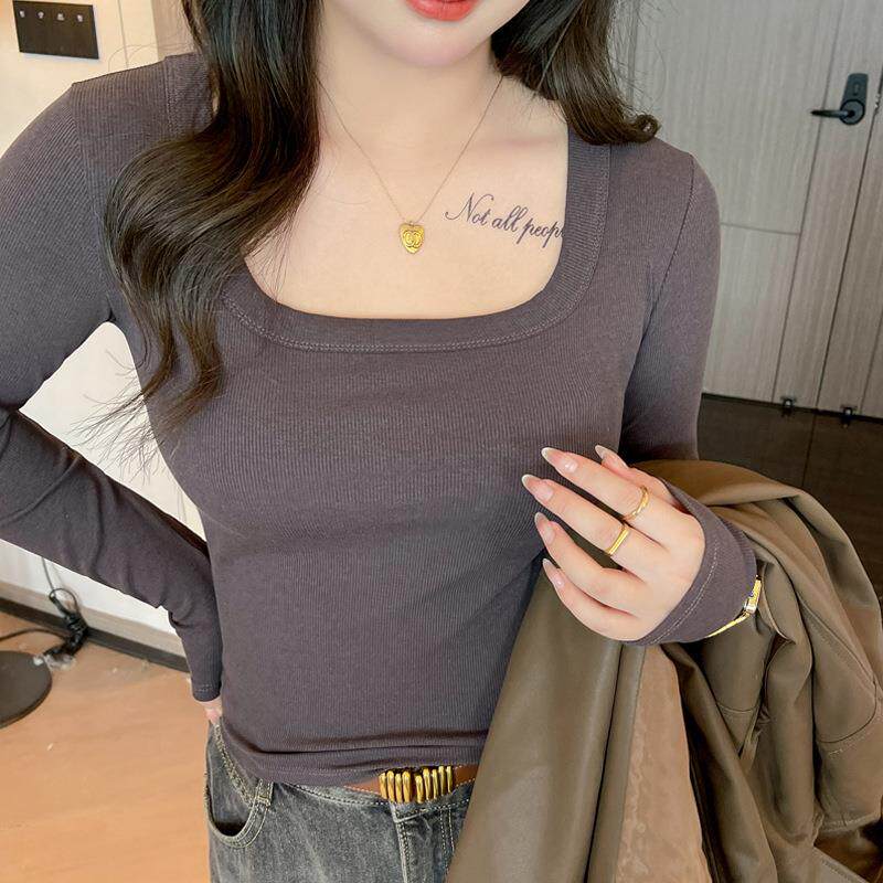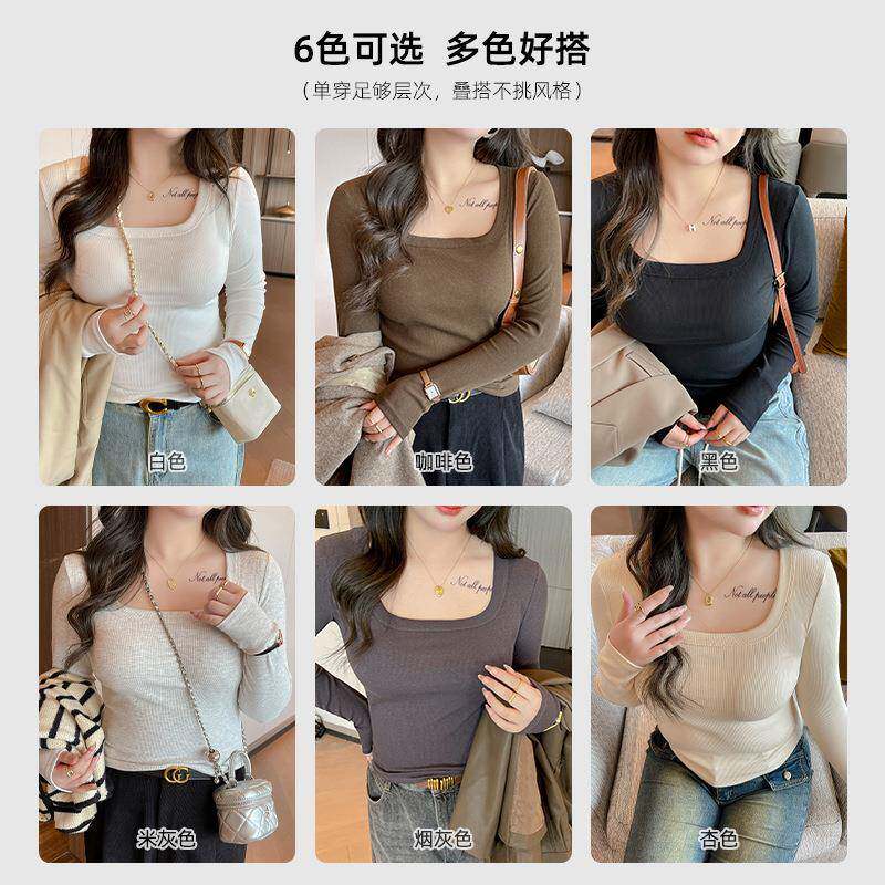 📚 大码方领螺纹长袖打底衫女士莫代尔内搭春秋季可外穿正肩Tt恤上衣
