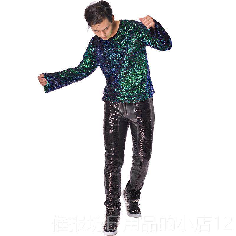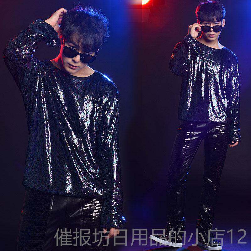 📚 正品火星店演唱会演出滚服男歌手华晨酒宇同款摇长袖亮片t恤吧夜