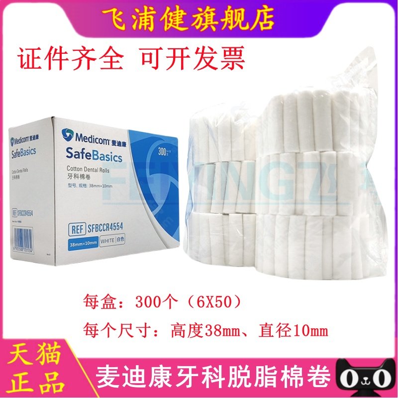 📚 麦迪康MEDICOM医用脱脂棉卷 牙科口腔耗材 隔湿止血棉条1盒300支