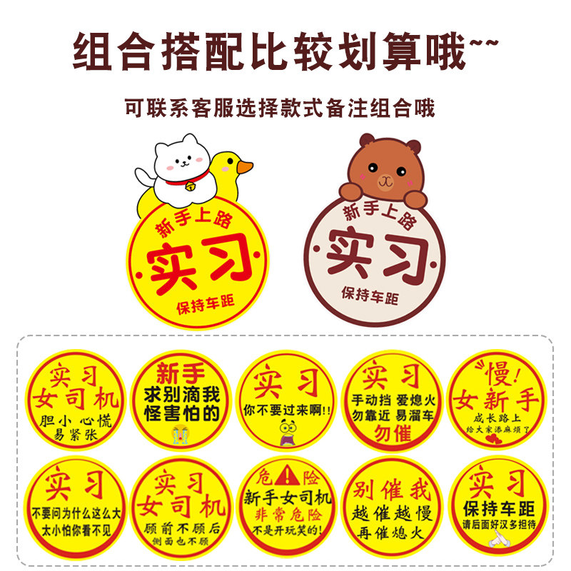 📚 实习车贴女司机男新手上路驾驶磁性贴创意文字反光请多包涵标志