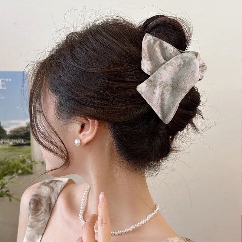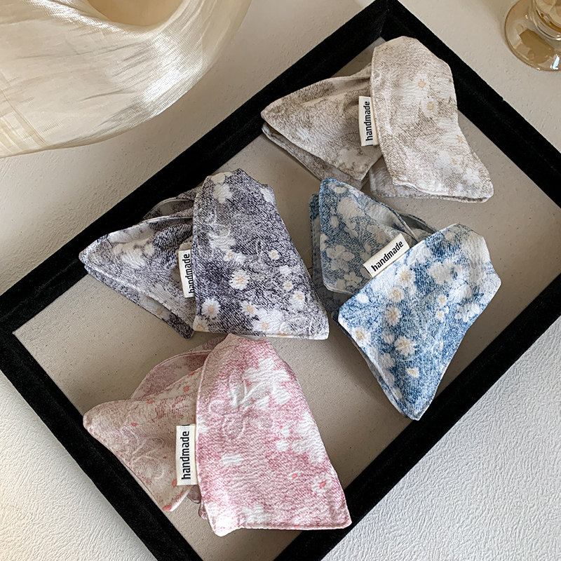 📚 荔丫荔丫蓝色碎花三角形布艺发夹女后脑勺盘发抓夹网红鲨鱼夹发饰