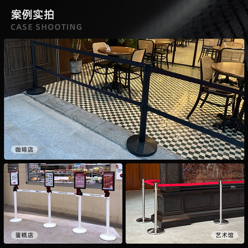 📚 一米线栏杆警戒线围栏银行排队护栏加厚不锈钢伸缩隔离带铁皮底座