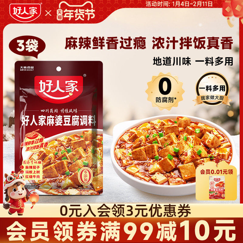 📚 好人家麻婆豆腐调料80g*3袋麻辣豆腐炒菜料酱料四川特产调味料包
