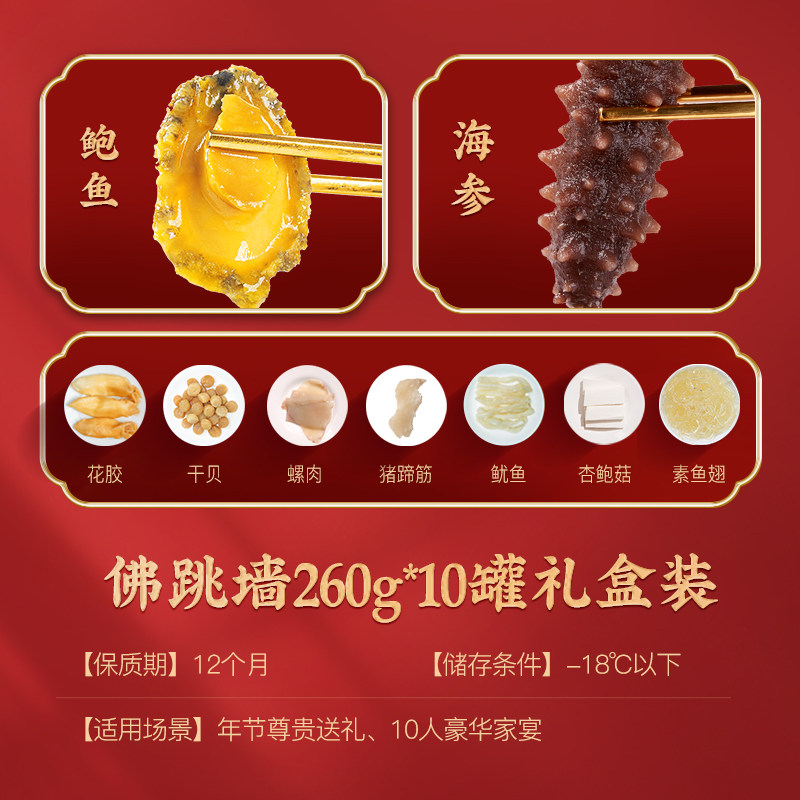 📚 红小厨正宗佛跳墙加热即食高端海鲜鲍鱼海参大盆菜礼盒260g*10罐