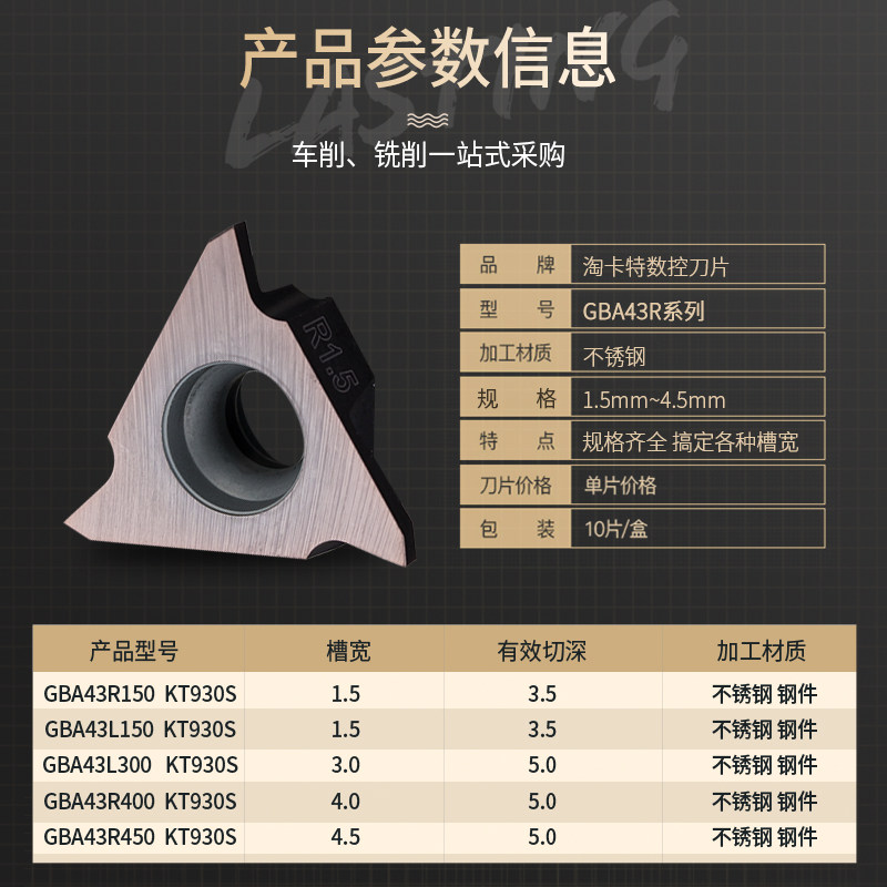 📚 数控车床刀具立装浅槽刀片不锈钢卡簧槽三角切断槽刀粒GBA43R150