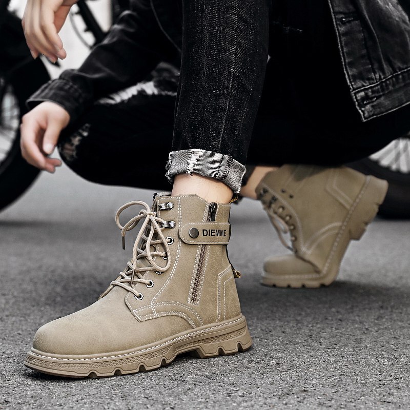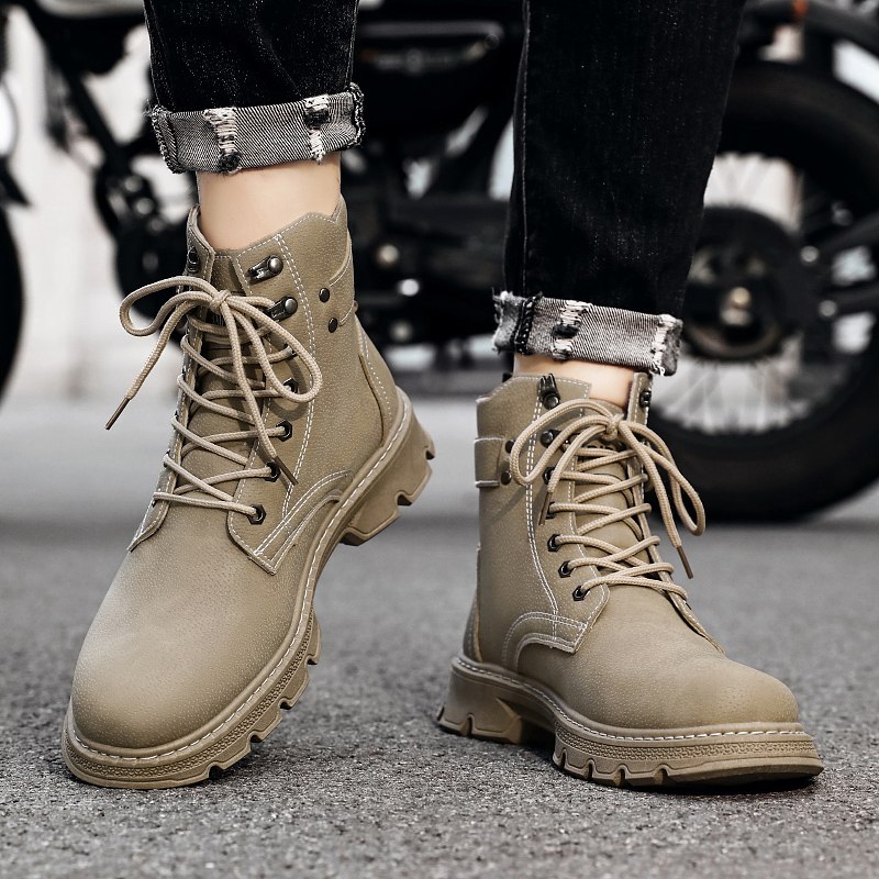 📚 马丁靴男夏季潮流百搭休闲高帮鞋户外登山英伦风侧拉链沙漠工装靴