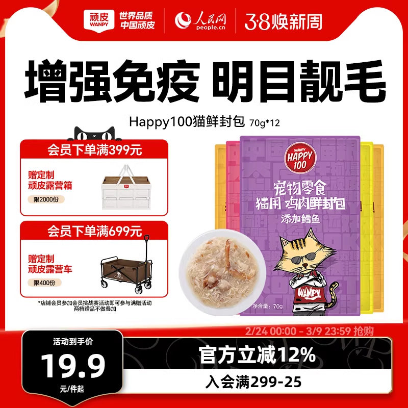 📚 wanpy顽皮猫咪零食营养增肥妙鲜封包条成幼猫小鱼干猫罐头猫湿粮