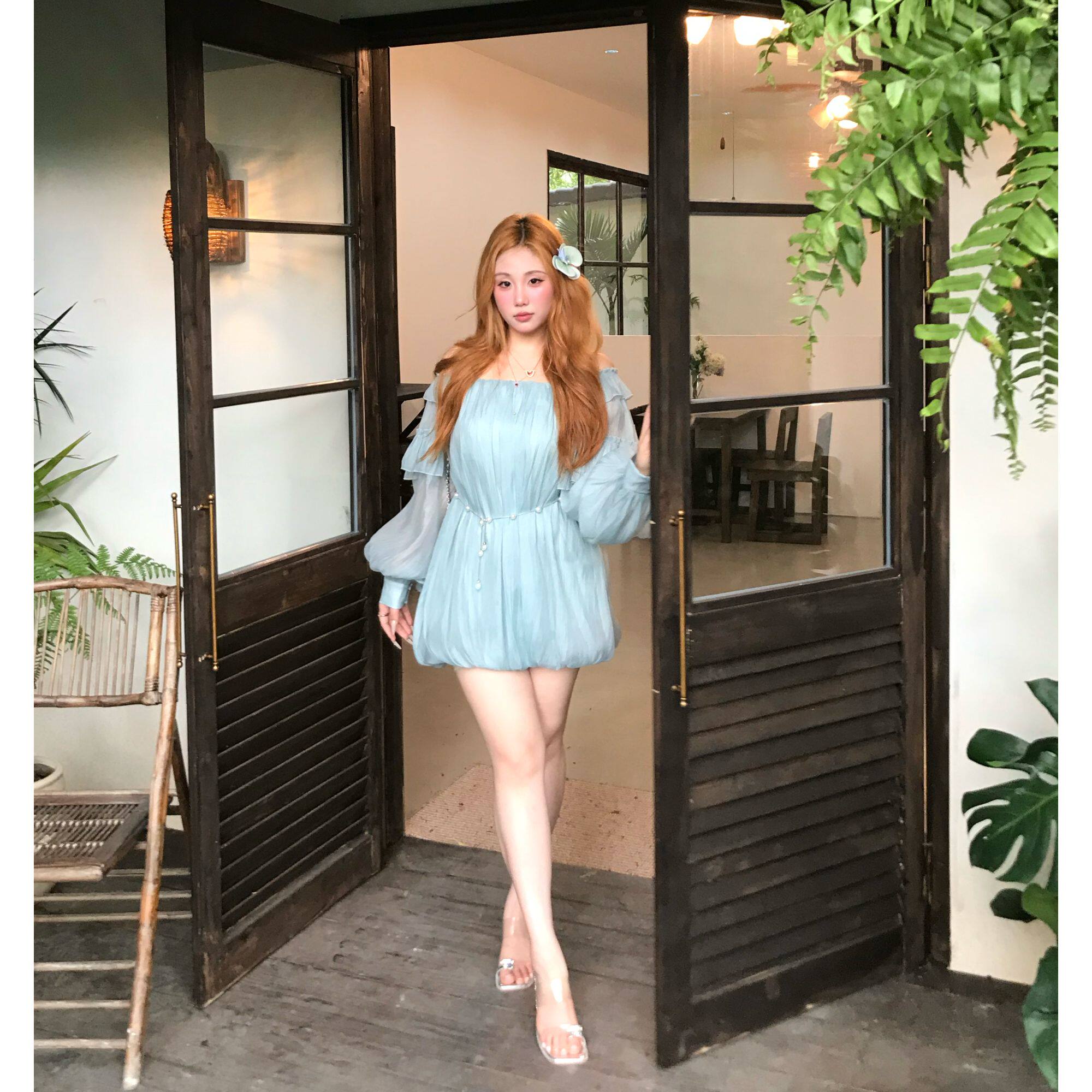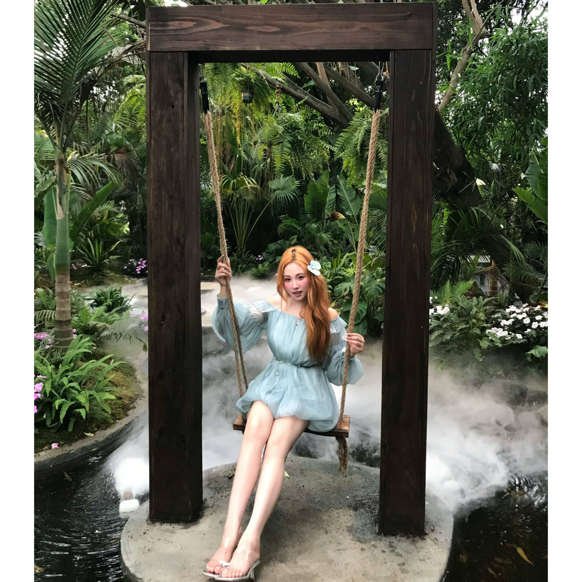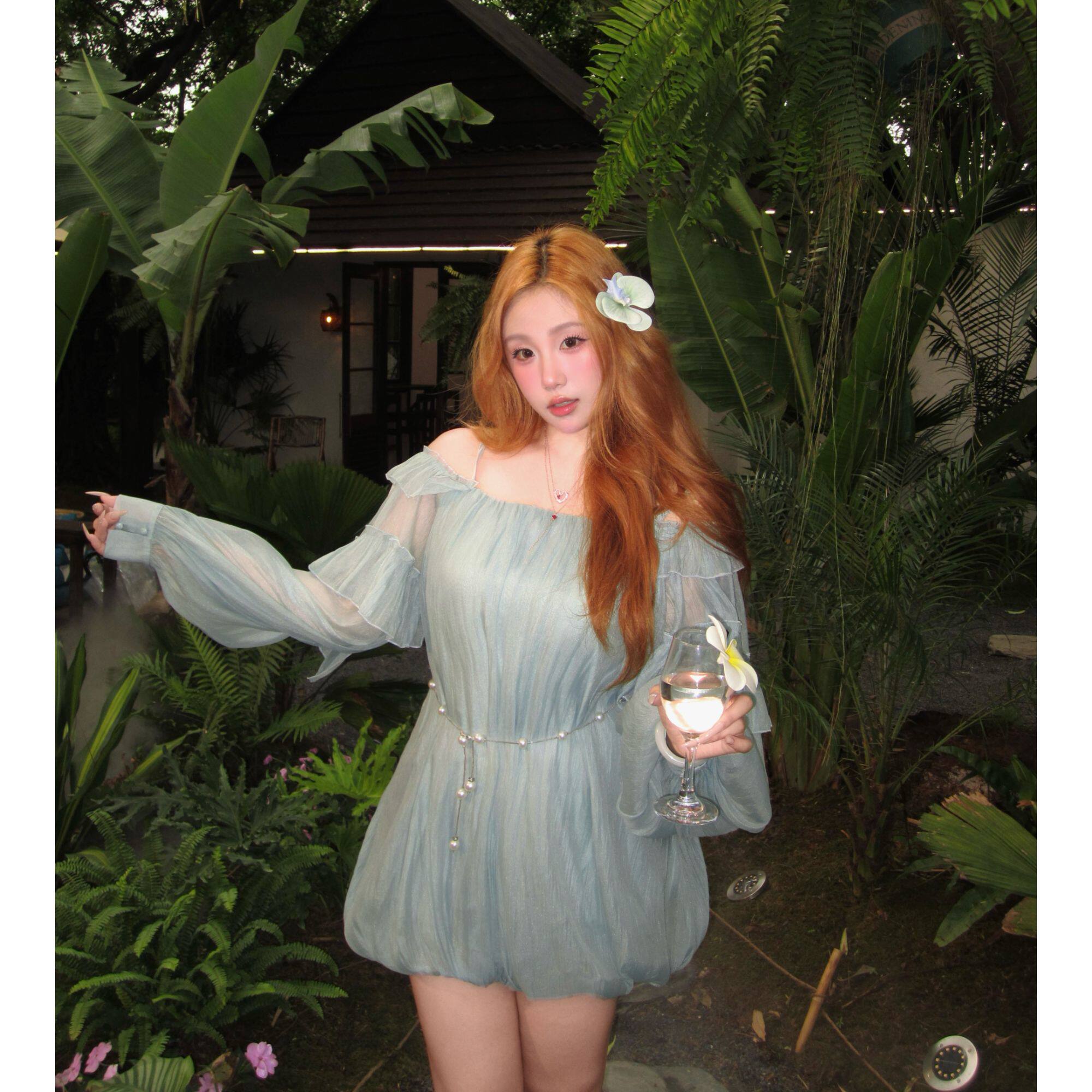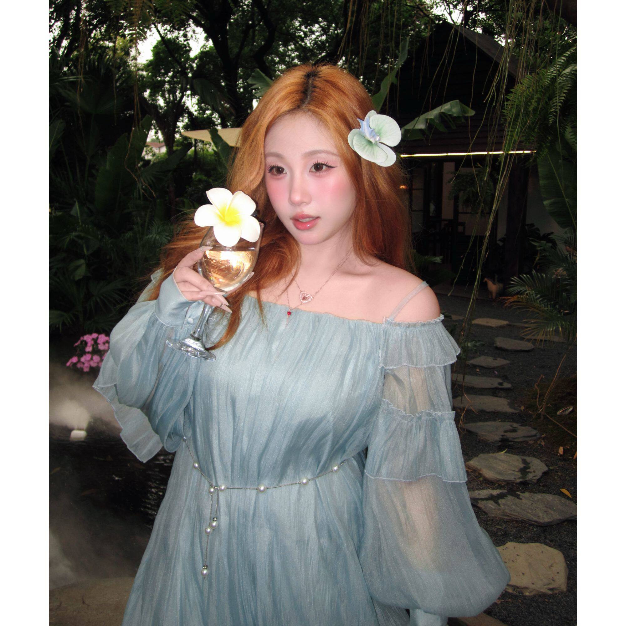 📚 【丝丝日记】“雾屿湖心”荷叶边花苞吊带裙女清冷气质连衣裙