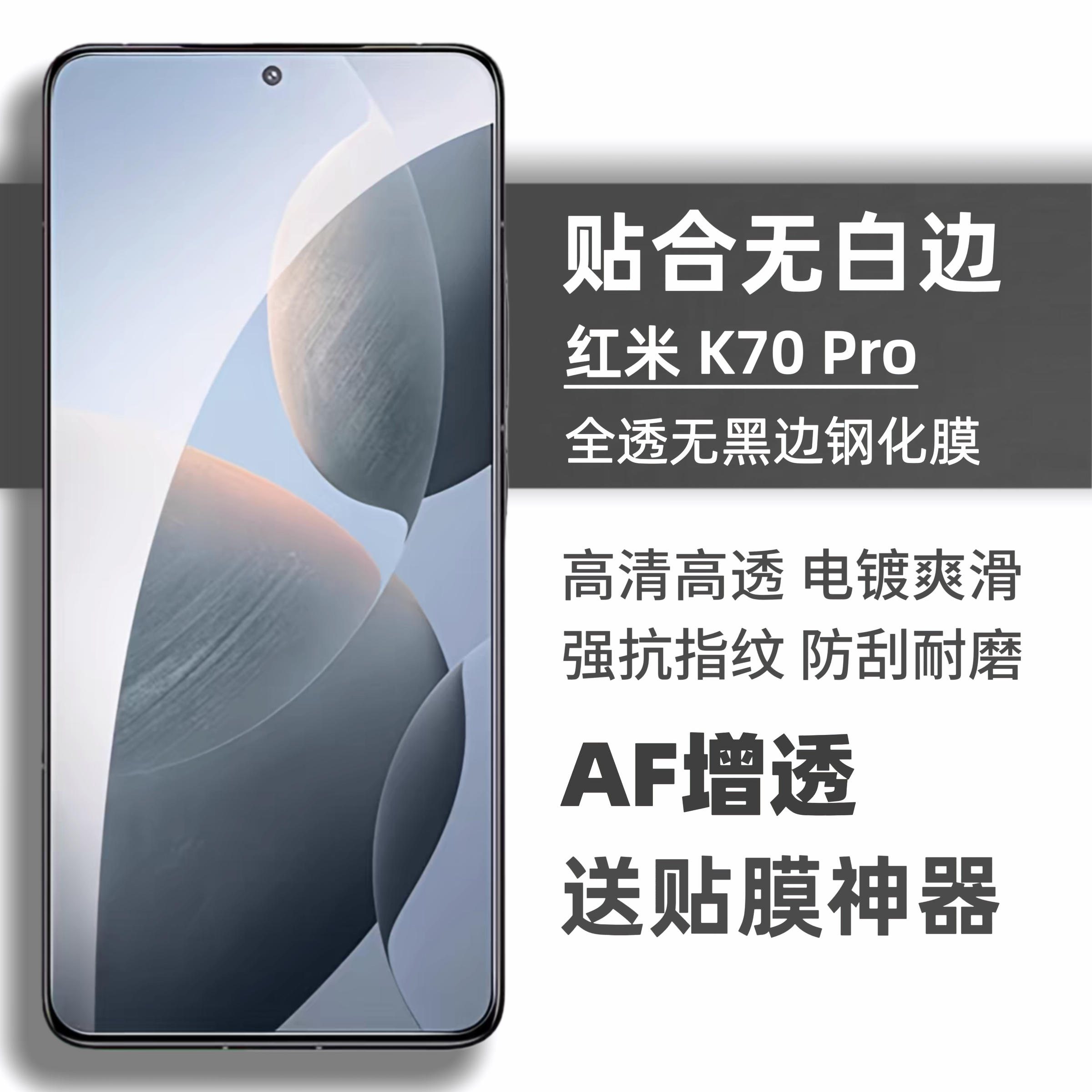 📚 适用于红米K70Pro无白边钢化膜高清防指纹小米K70E无黑边玻璃红米K60Pro手机膜非全屏K50/k60至尊版手机膜