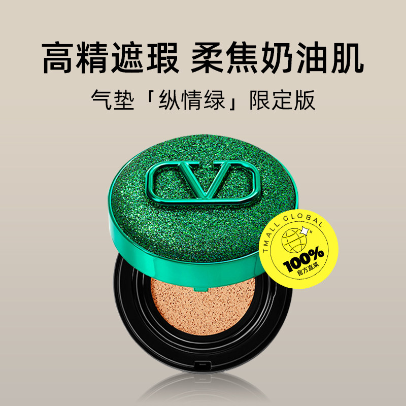 📚 【自营】华伦天奴气垫轻薄持妆防晒遮瑕限定粉底液纵情绿【临期】