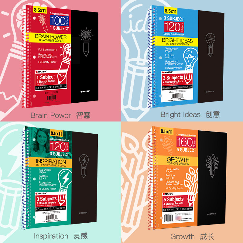 📚 凯萨KAISA灵感系列美式笔记本a4高颜值加厚可撕复古科目本大学生专用考研英语单词横线本超厚大号线圈本ins风