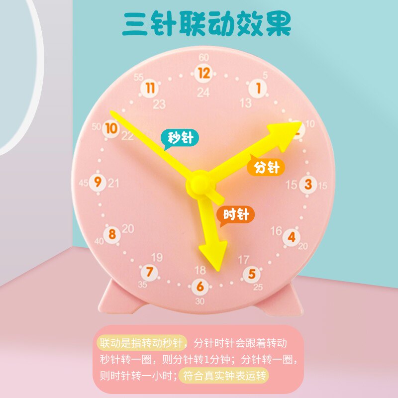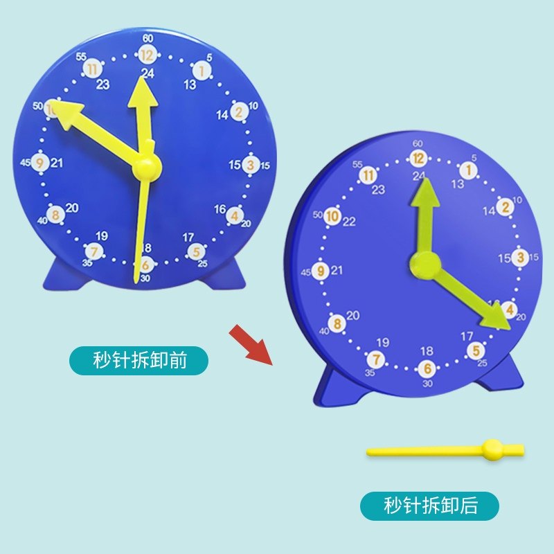 📚 钟表模型小学教具一二年级小学生儿童三针联动认识钟表和时间学习专用闹钟学具模型二针联动表盘老师教学推荐