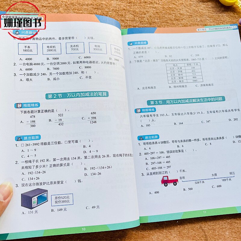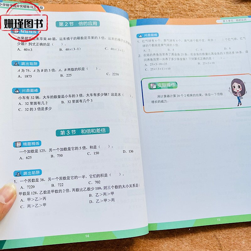 📚 三年级小学生数学 满分突破练习册 万以内数的加减法时分秒测量长方形和正方形分数认识面积小数初步年月日位置与方向专项训练