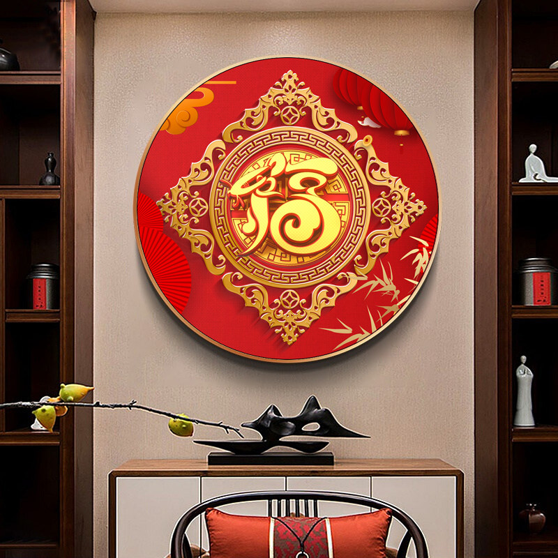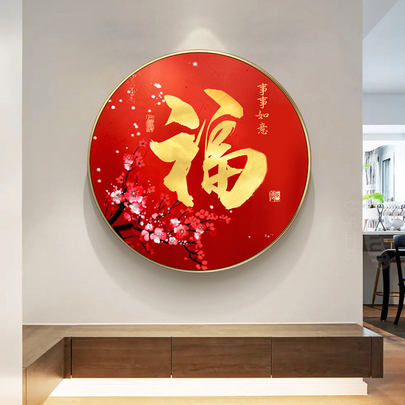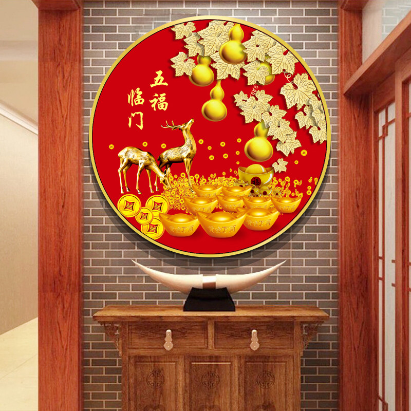 📚 五福临门玄关画新中式走廊过道福字挂画招财葫芦画圆形餐厅装饰画