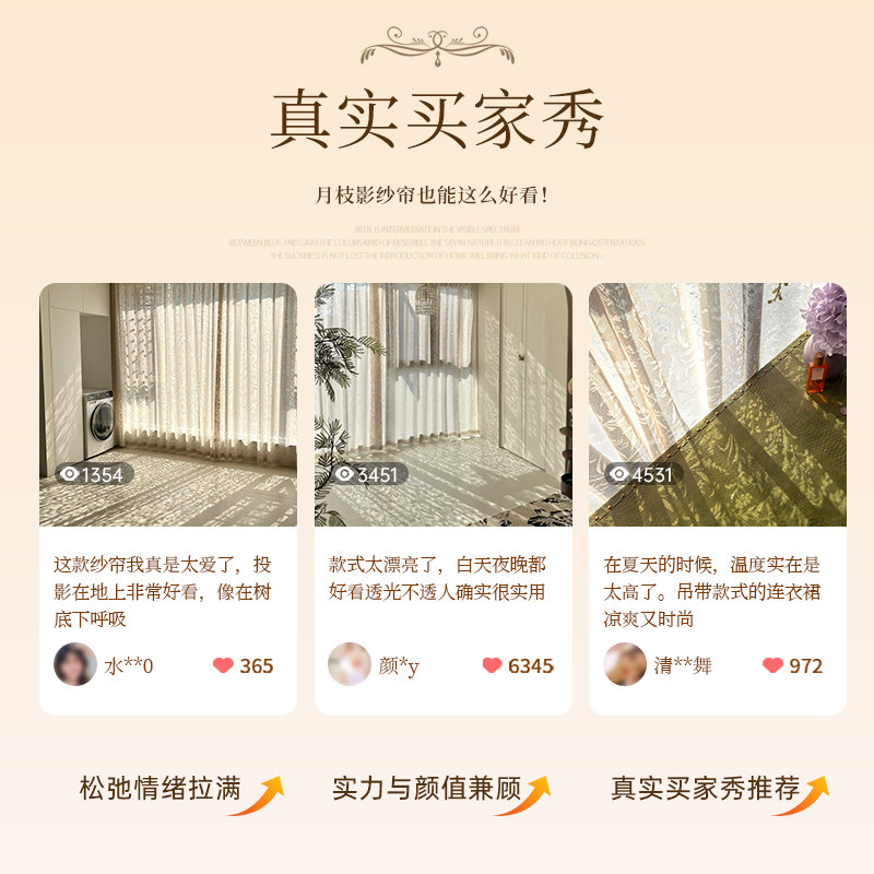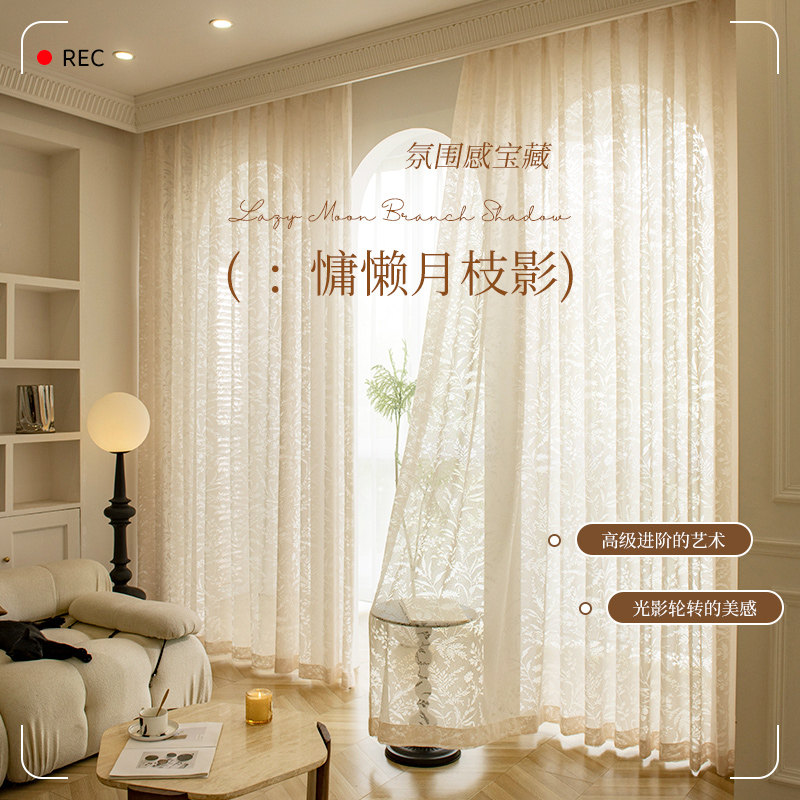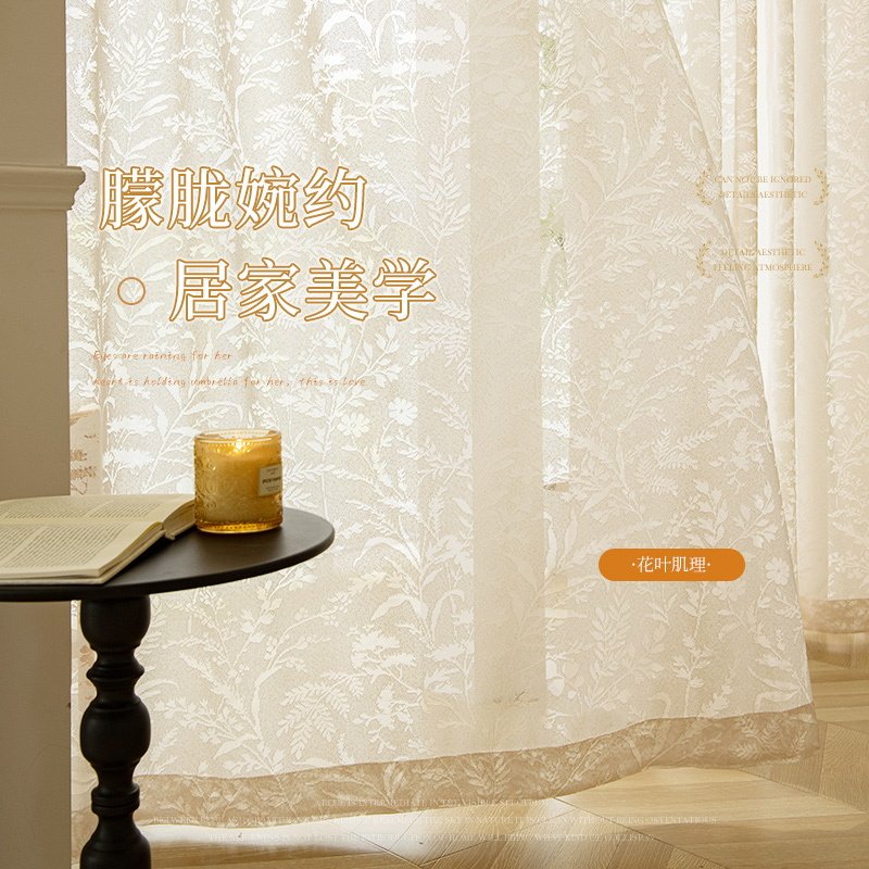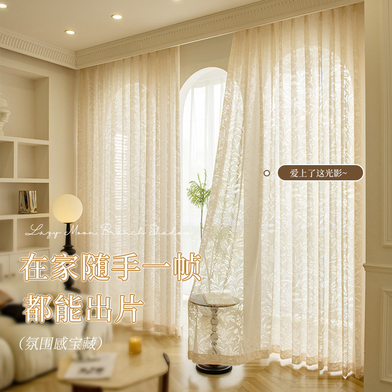 📚 月枝影纱帘法式蕾丝透光不透人窗帘免打孔安装卧室客厅沙阳台窗纱