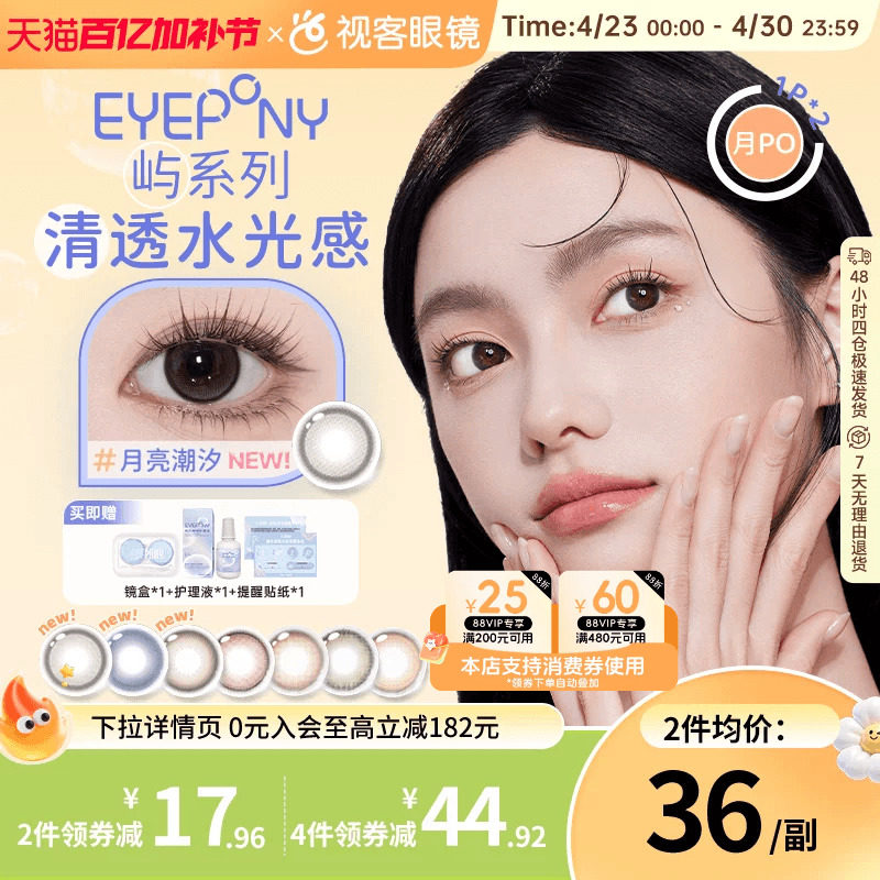 📚 EYEPONY美瞳月抛2片月晕灰屿麋褐彩色近视隐形眼镜