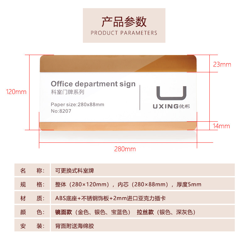 📚 德致可更换门牌定制镜面拉丝不锈钢科室牌禁止吸烟提示牌办公室