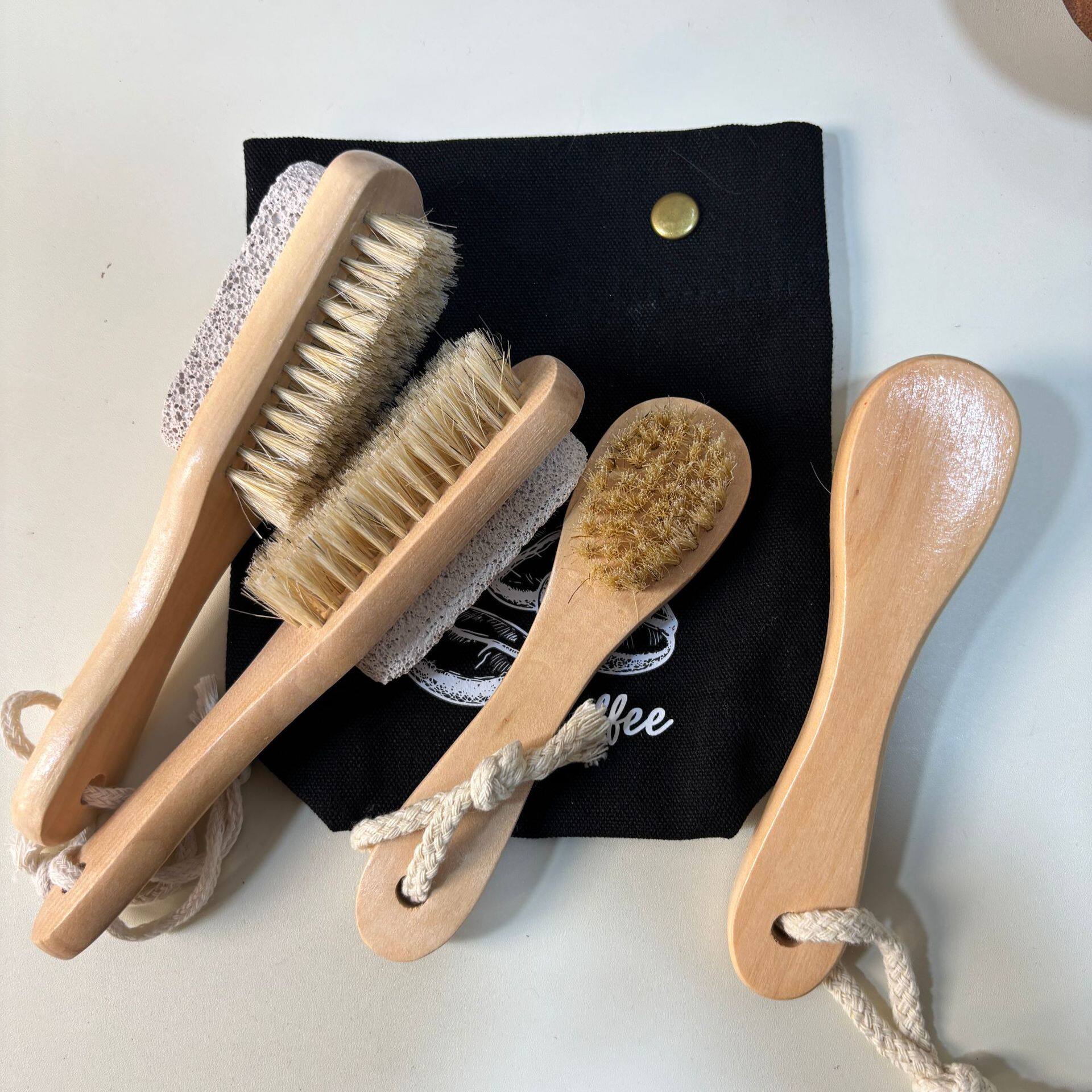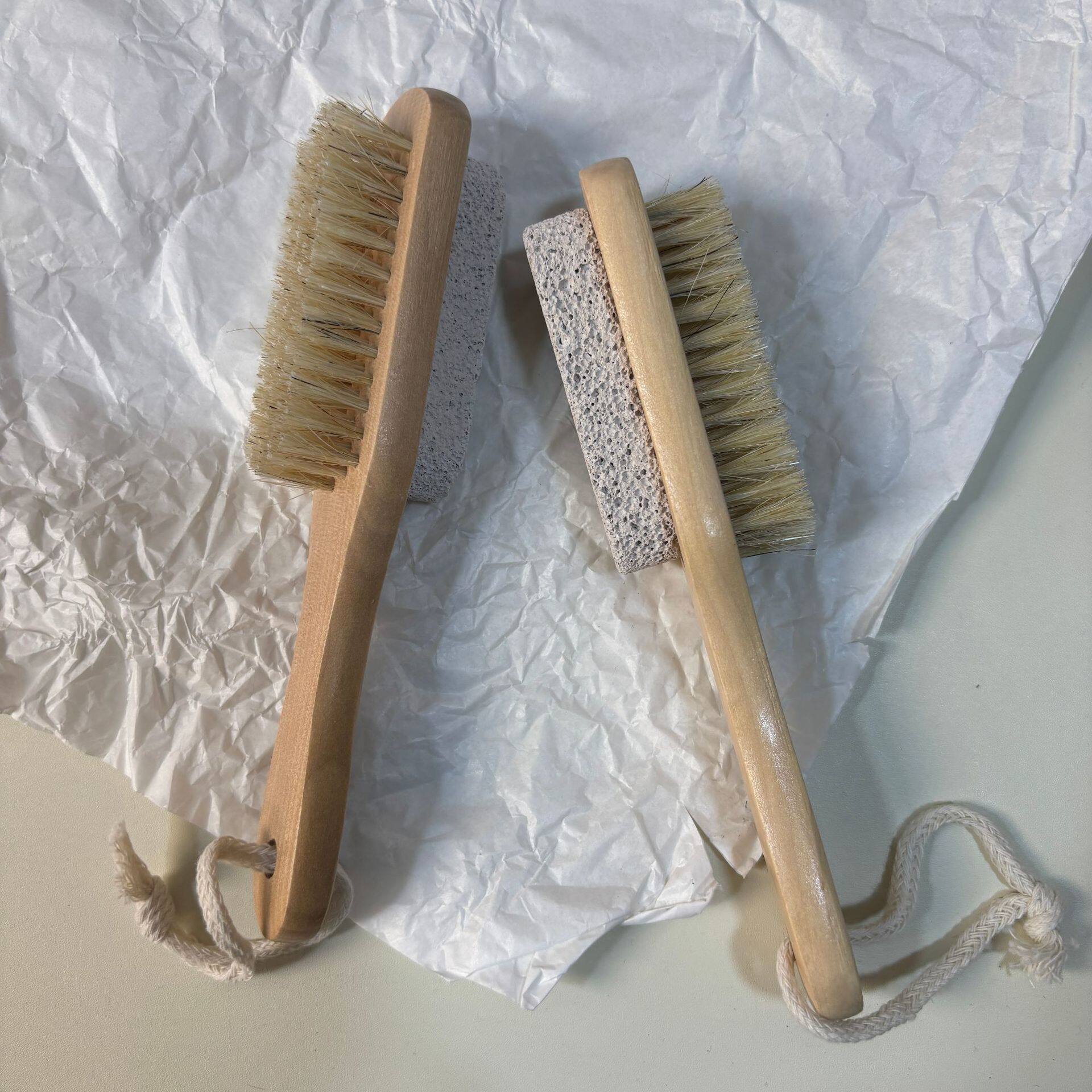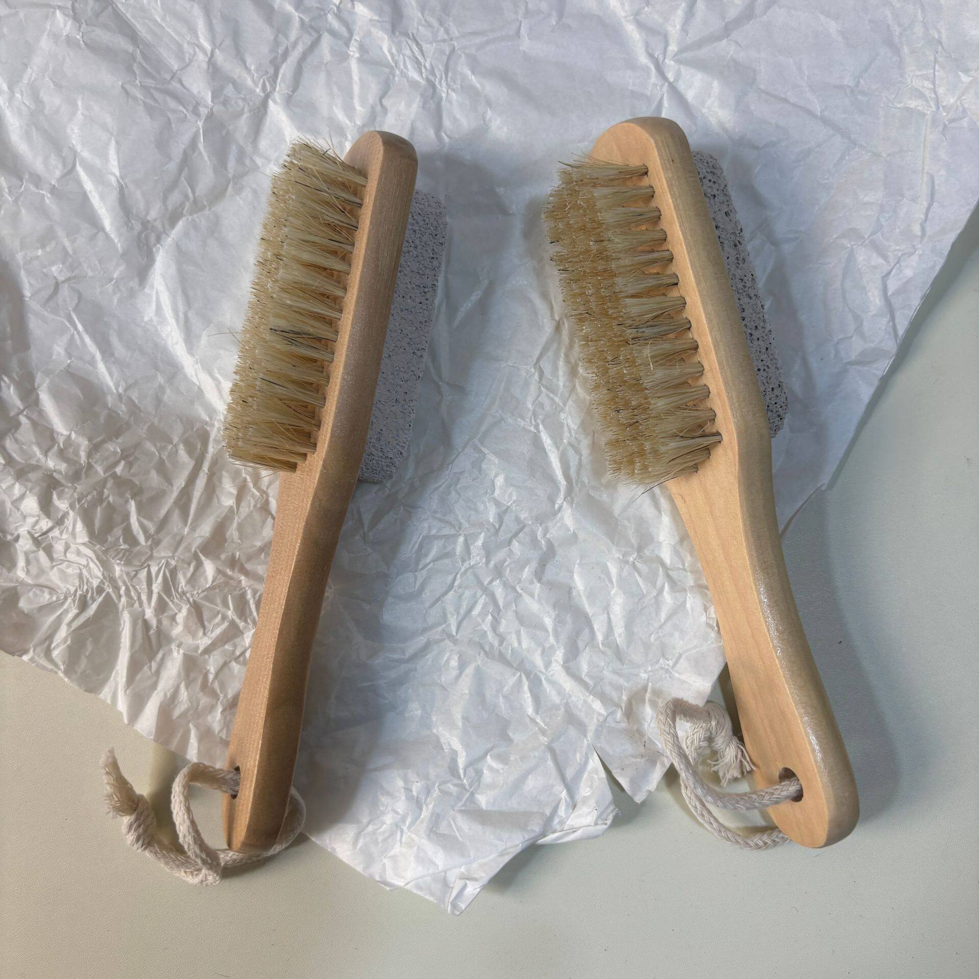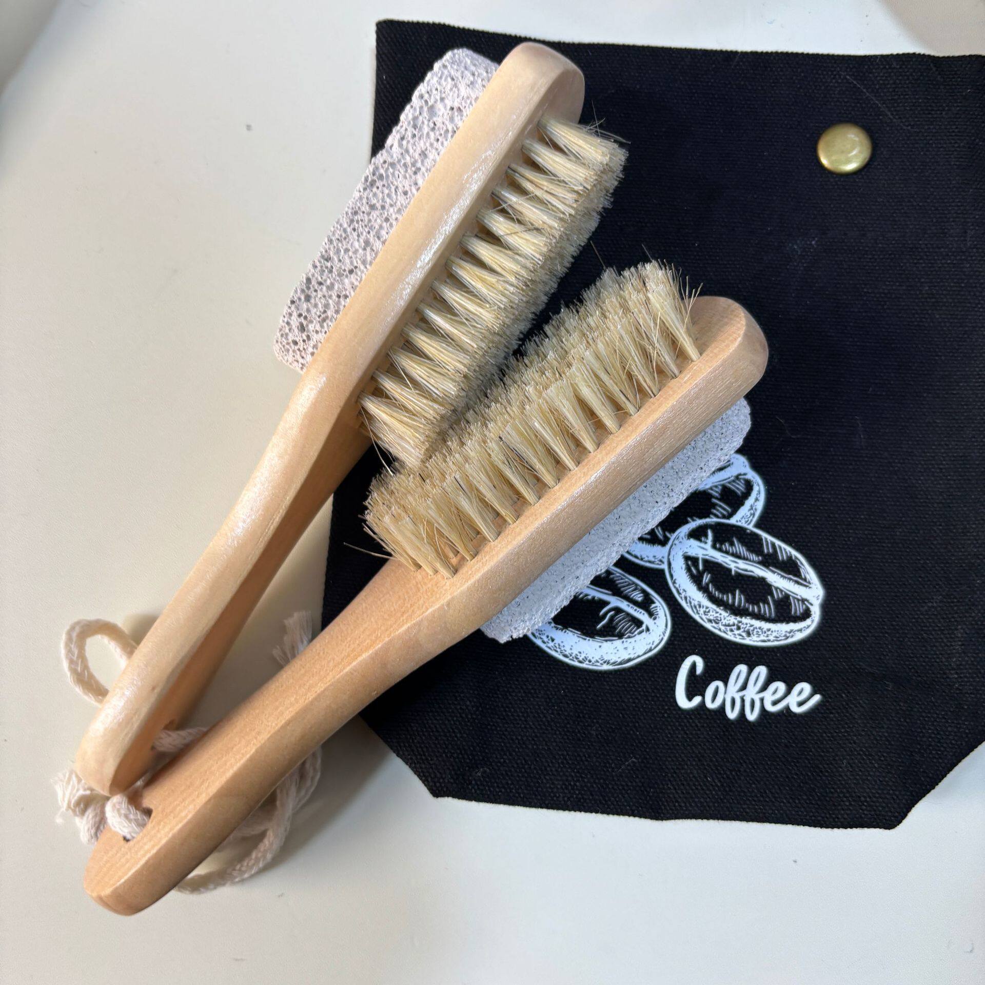📚 创意双面修脚刷木质手柄猪鬃毛刷去死皮磨脚石足部护理工具搓脚刷