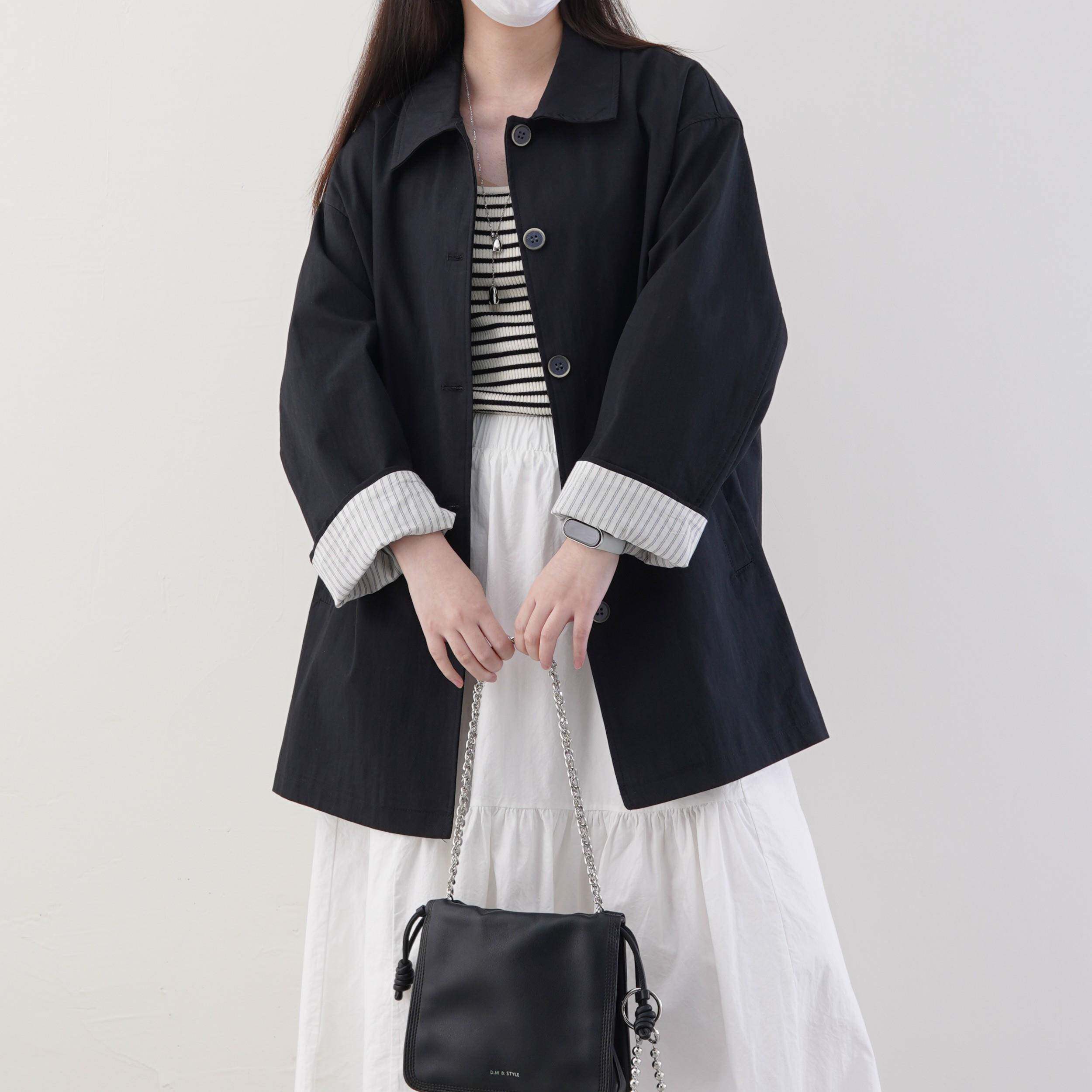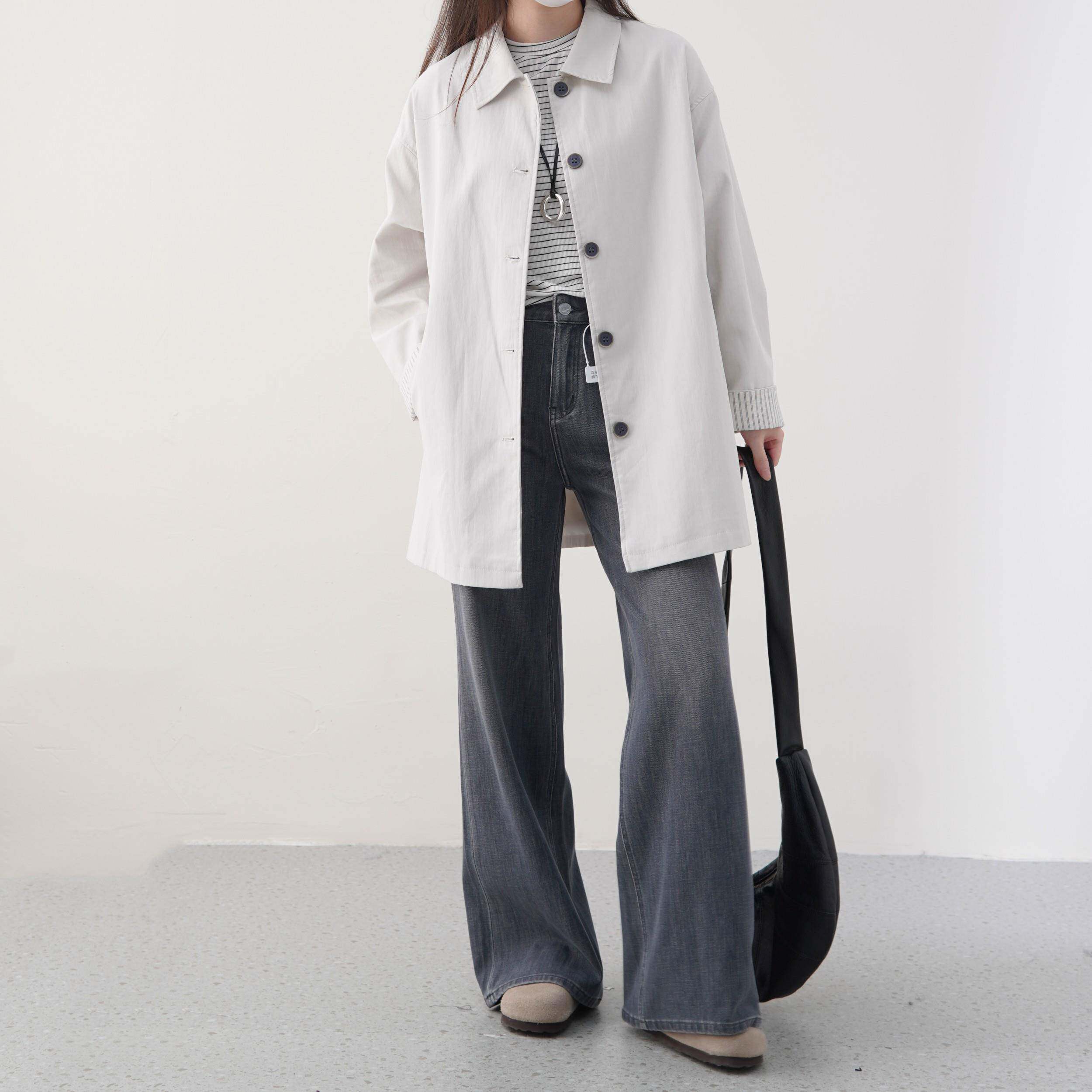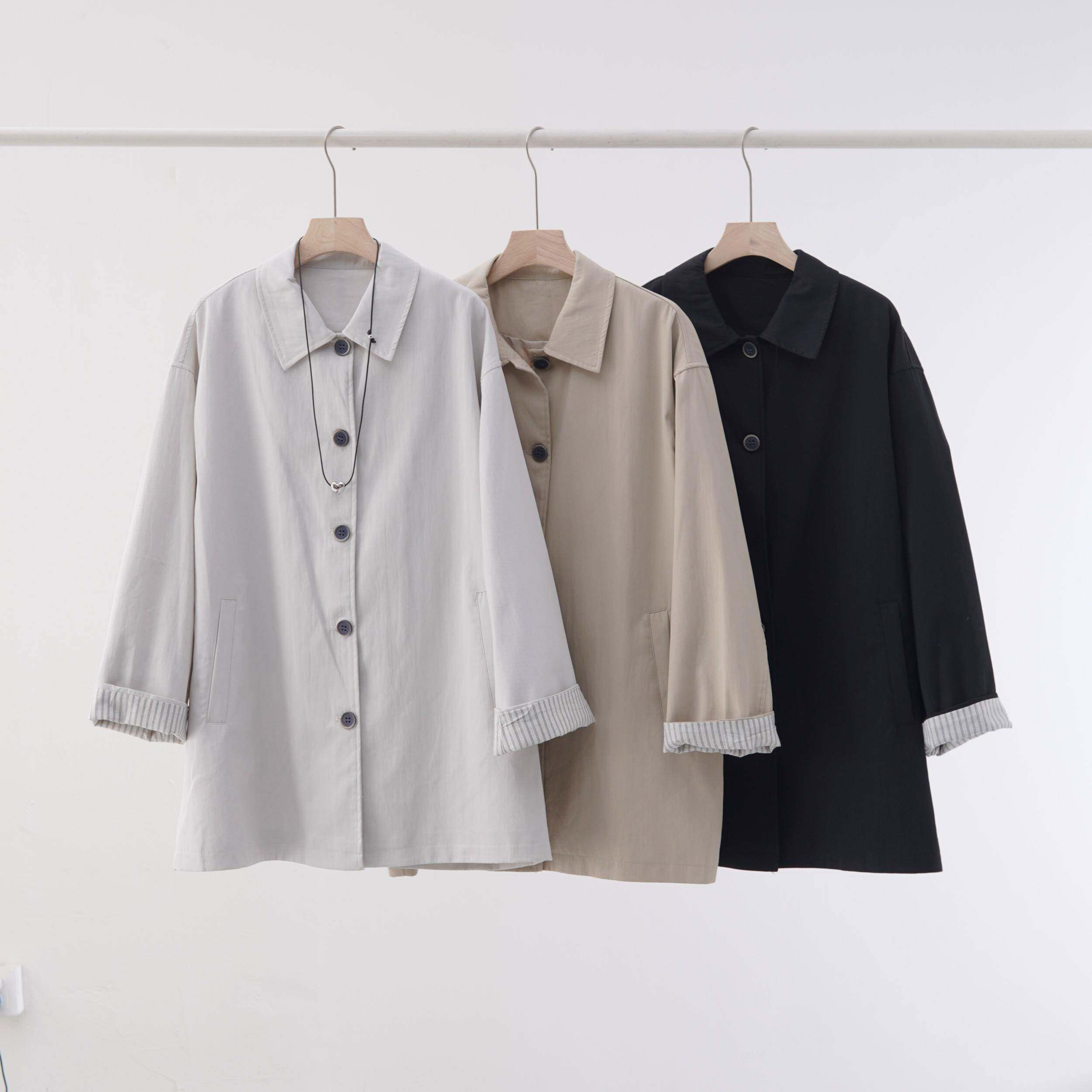 📚 8.6 早秋新款!棉锦小翻领中长款韩系风衣中长款百搭外套上衣女