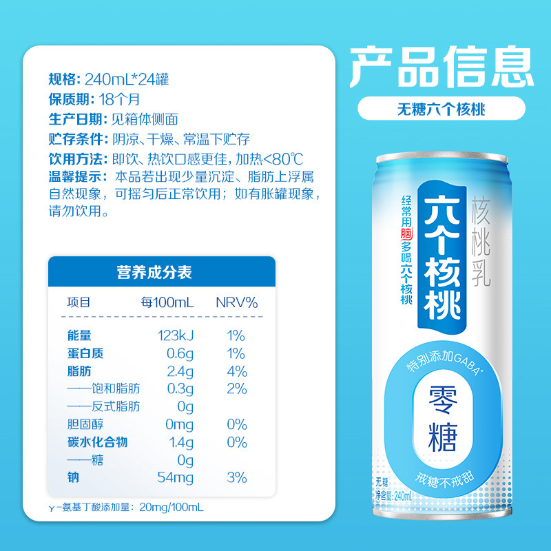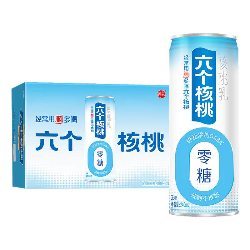 📚 养元六个核桃无糖型240ml*24罐核桃乳植物蛋白饮料整箱饮品送礼