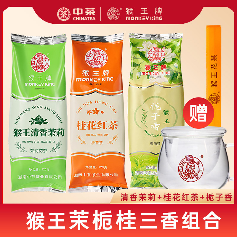 📚 猴王牌茉莉花茶栀香绿茶桂花红茶乌龙茶袋装茶叶三香组合中茶茶叶