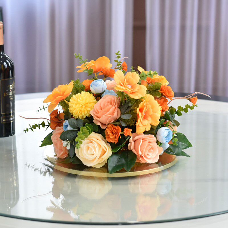 📚 酒店圆桌中间摆花宴会厅桌花仿真花摆件餐厅餐桌花摆花会议桌假花