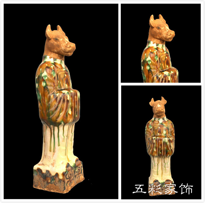 📚 仿古陶俑 十二生肖兽首俑 唐三彩摆件 陶瓷工艺品 古典家居饰品