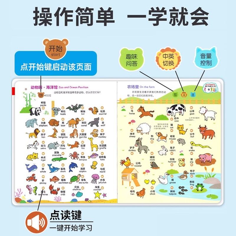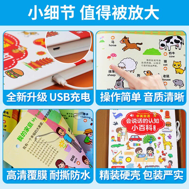 📚 会说话的认知小百科早教有声书儿童手指点读发声书早教启蒙书有声读物幼儿婴儿触摸书1-2-岁宝宝书本中英双语学说话绘本幼儿园书籍