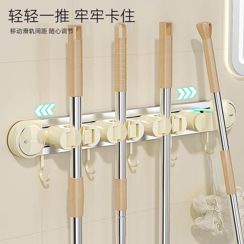 📚 吸盘拖把壁挂夹免打孔卫生间扫把固定架门后滑轨拖布夹挂壁拖把夹