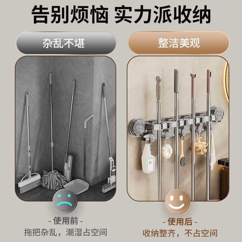 💥挂壁拖把夹吸盘免打孔浴室神器!券后仅需19.8!💪