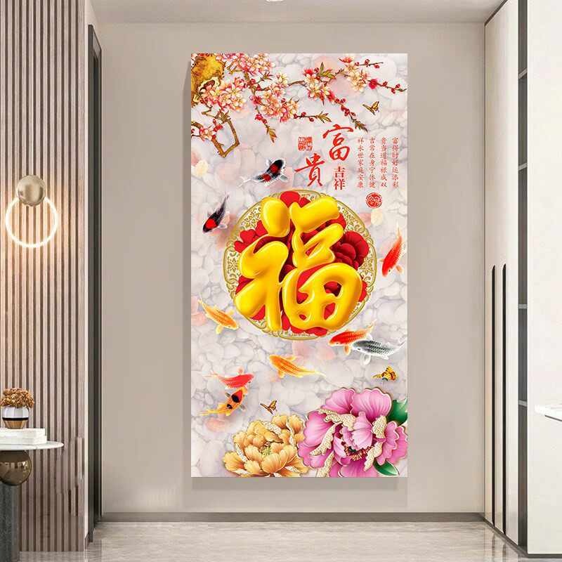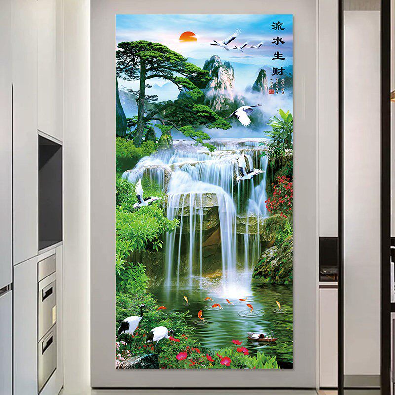 📚 流水生财山水画墙贴壁画装饰画风景画客厅玄关正对门壁纸挂画贴画