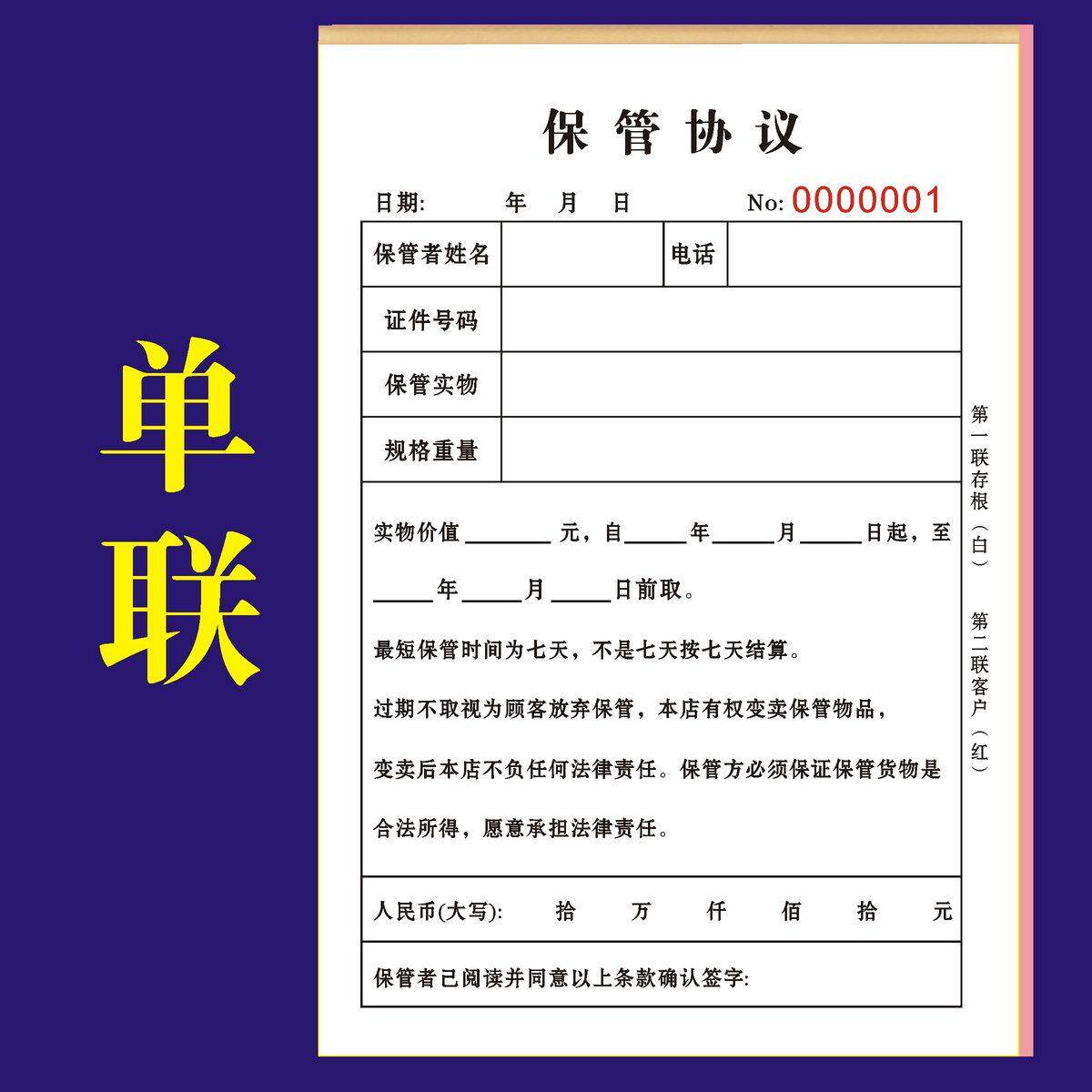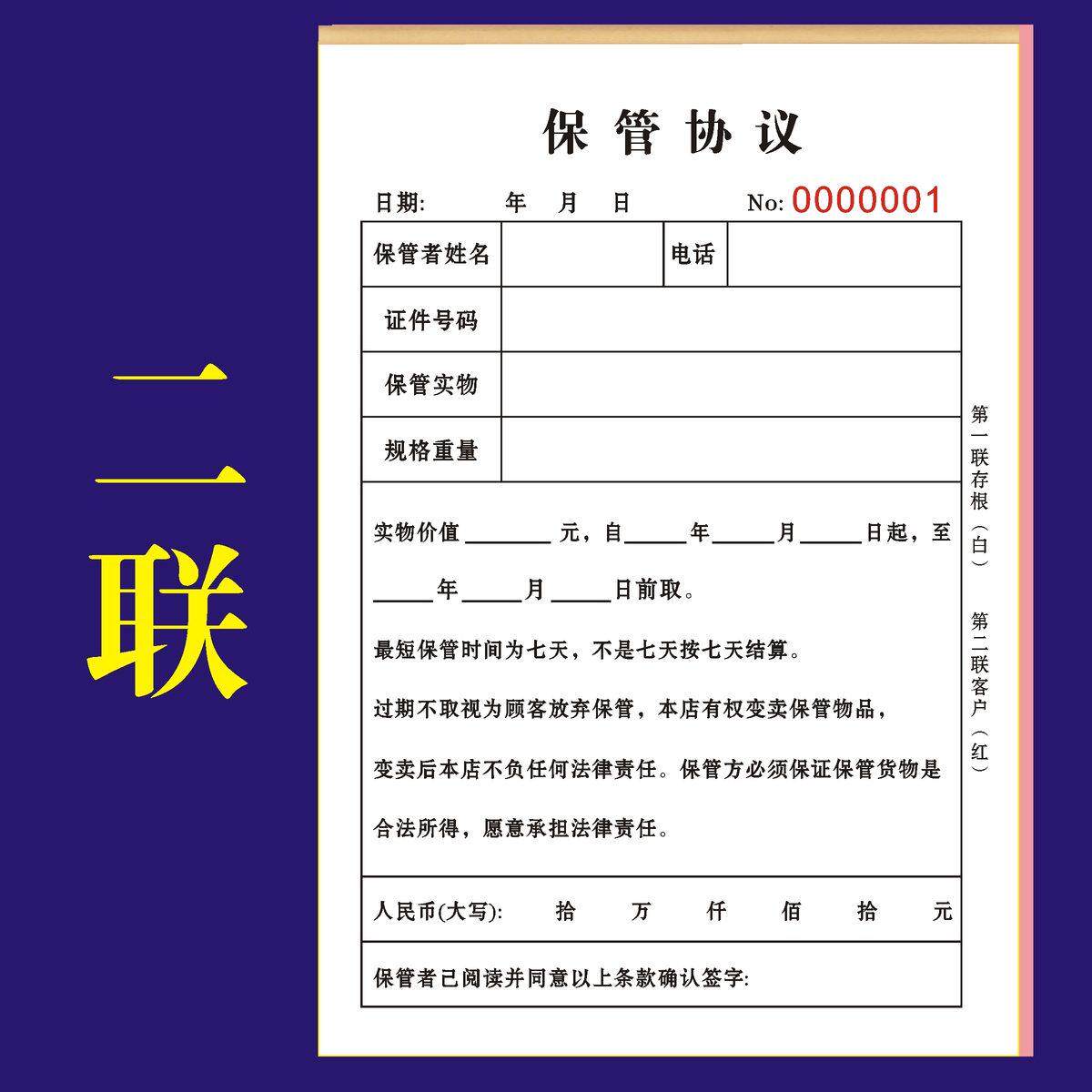 📚 寄卖保管协议书回收登记表黄金手机物品寄售典当行物品抵押票据本