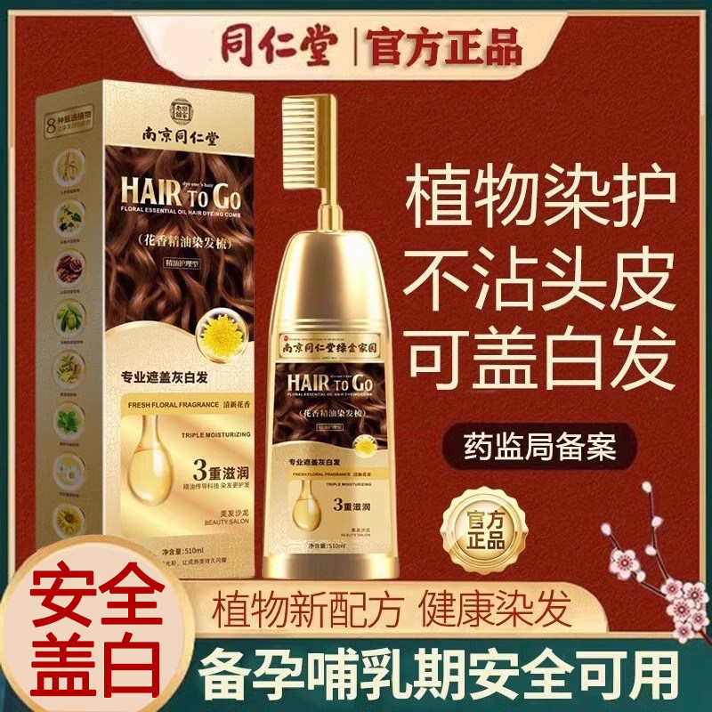 📚 同仁堂染发剂植物纯天然白染黑一梳彩染不伤发膏温和不刺激无苯氨