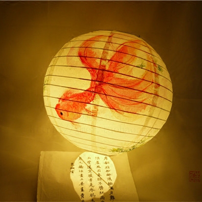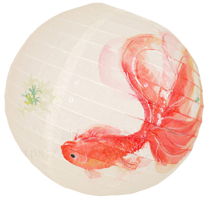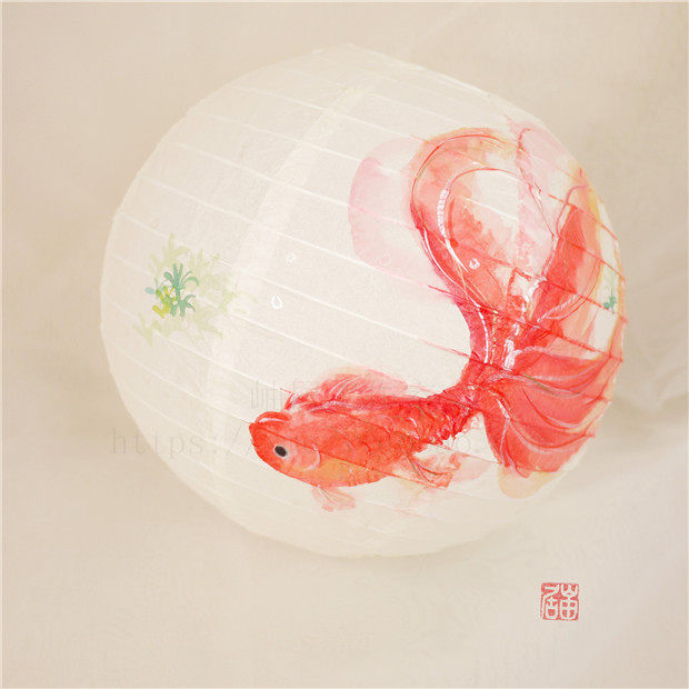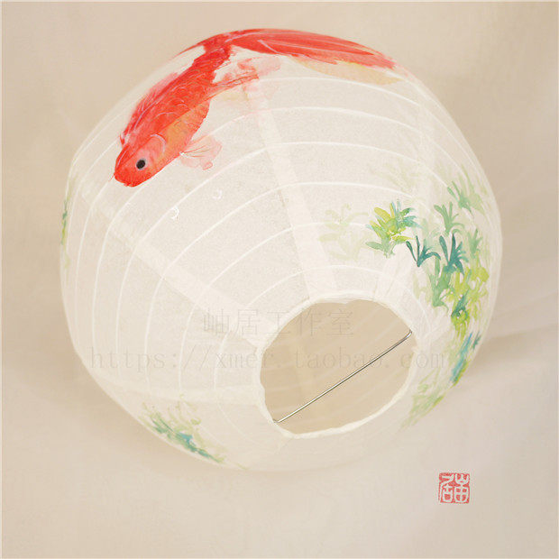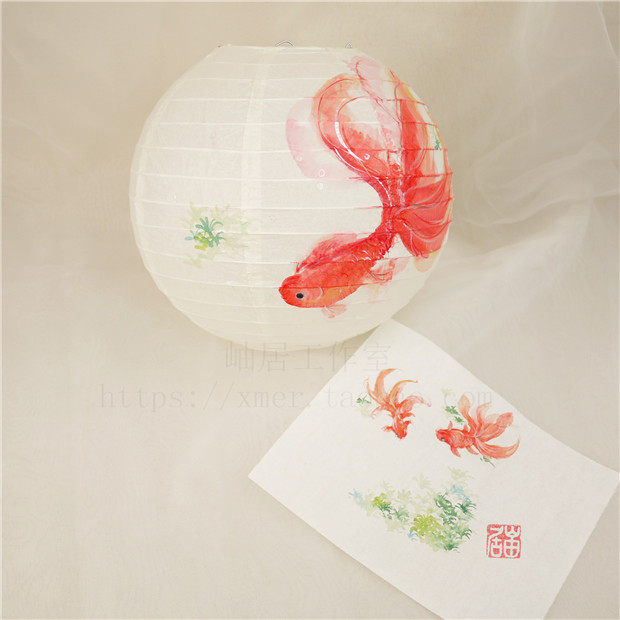 📚 年年有余手绘纸灯笼金鱼花朝节古风摄影道具手提发光纸灯笼灯罩