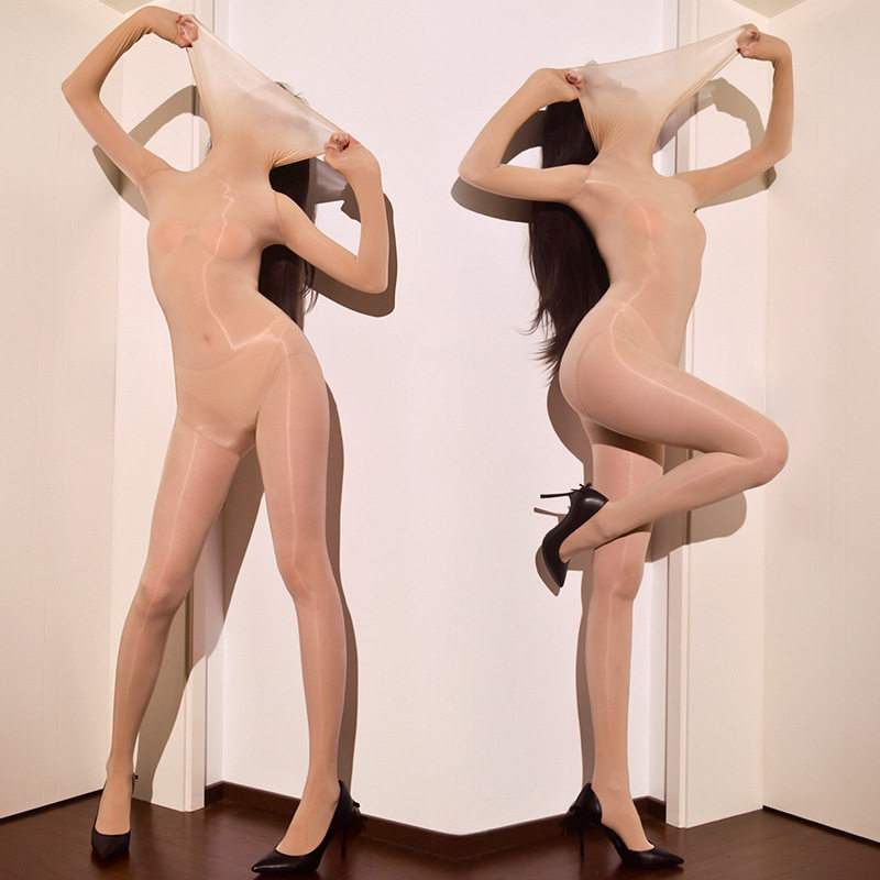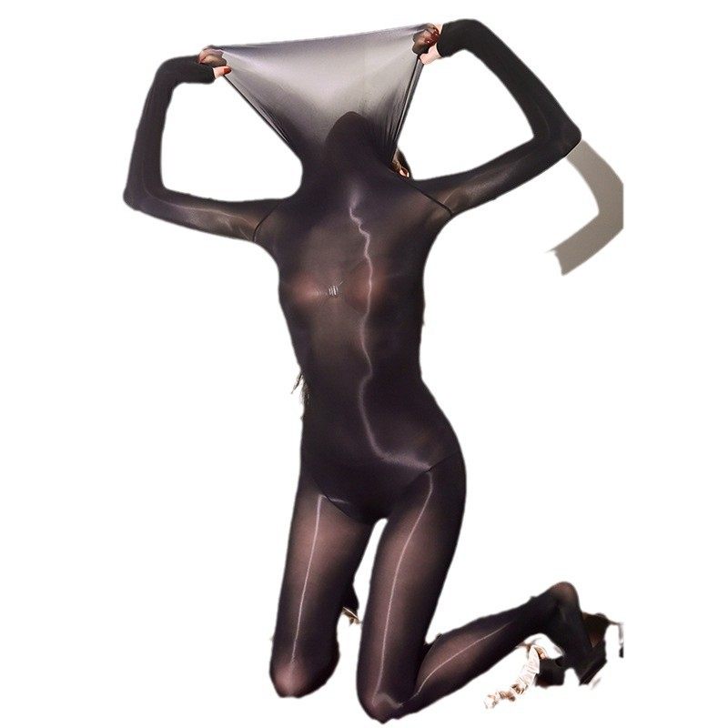 📚 【胸无缝】腿无缝高叉油亮连体衣5D全身款紧身衣性感高领连身丝袜