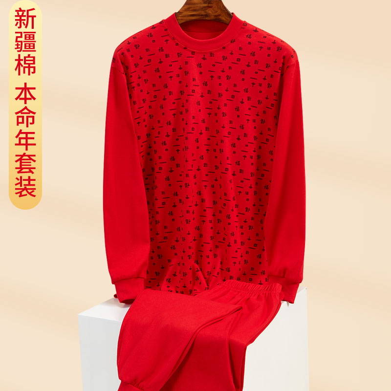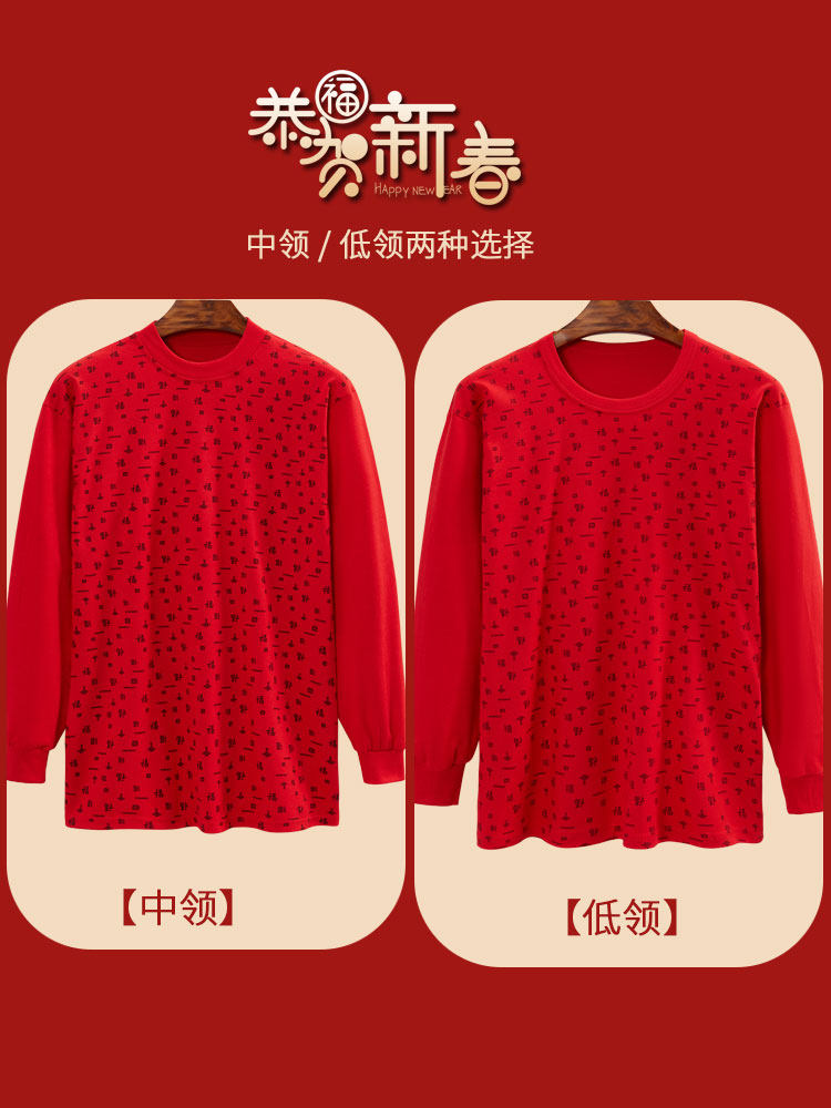 📚 本命年秋衣秋裤女纯棉大红色保暖内衣套装高领中老年人棉毛衫妈妈