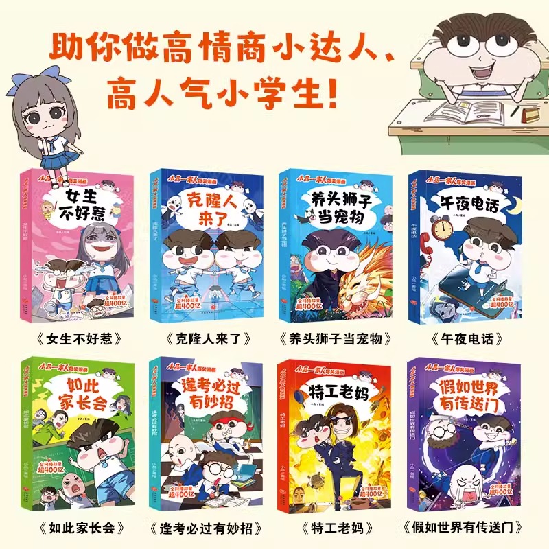 📚 小品一家人爆笑漫画全套8册儿童漫画书小学生让孩子从手机迷变成小书虫的漫画小品如何机智处理亲子关系师生关系及同伴关系做高情
