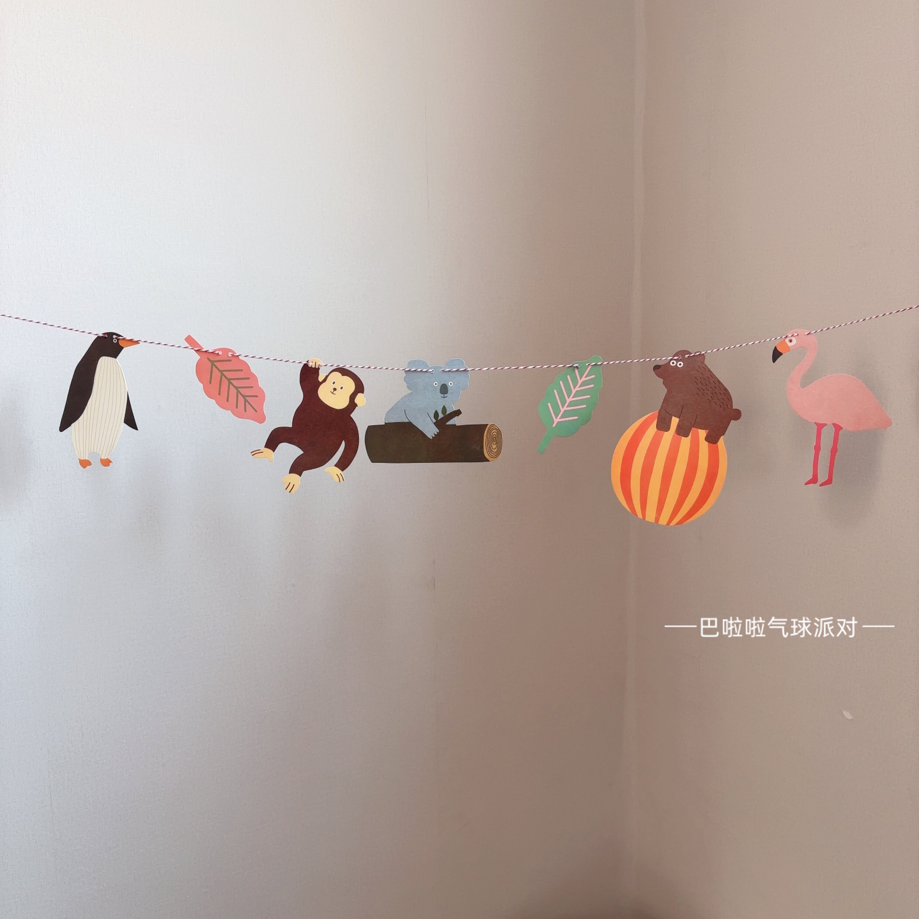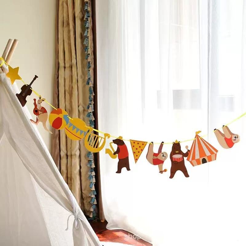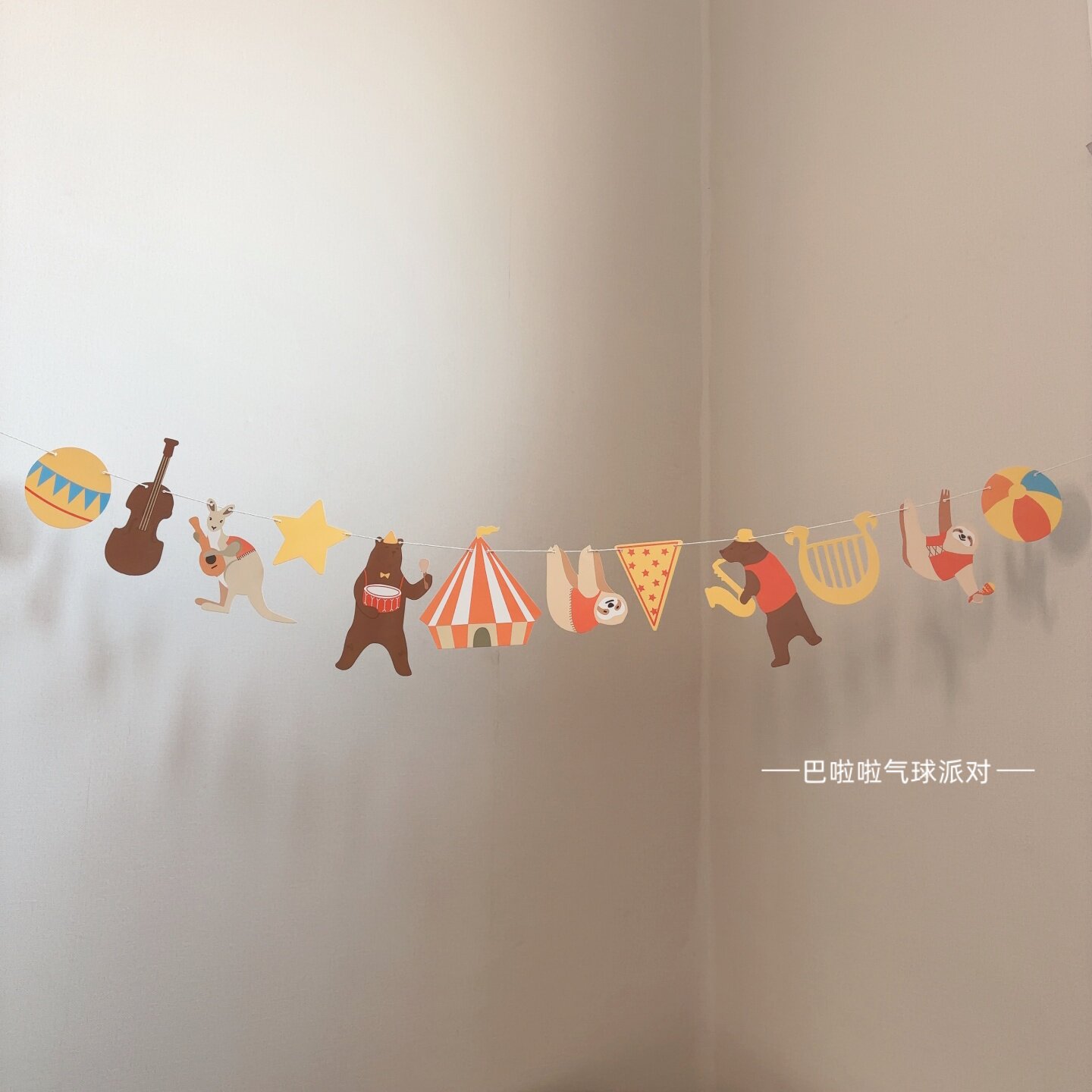 📚 可爱卡通动物马戏团拉旗装饰儿童生日派对布置满月百天拉花彩旗
