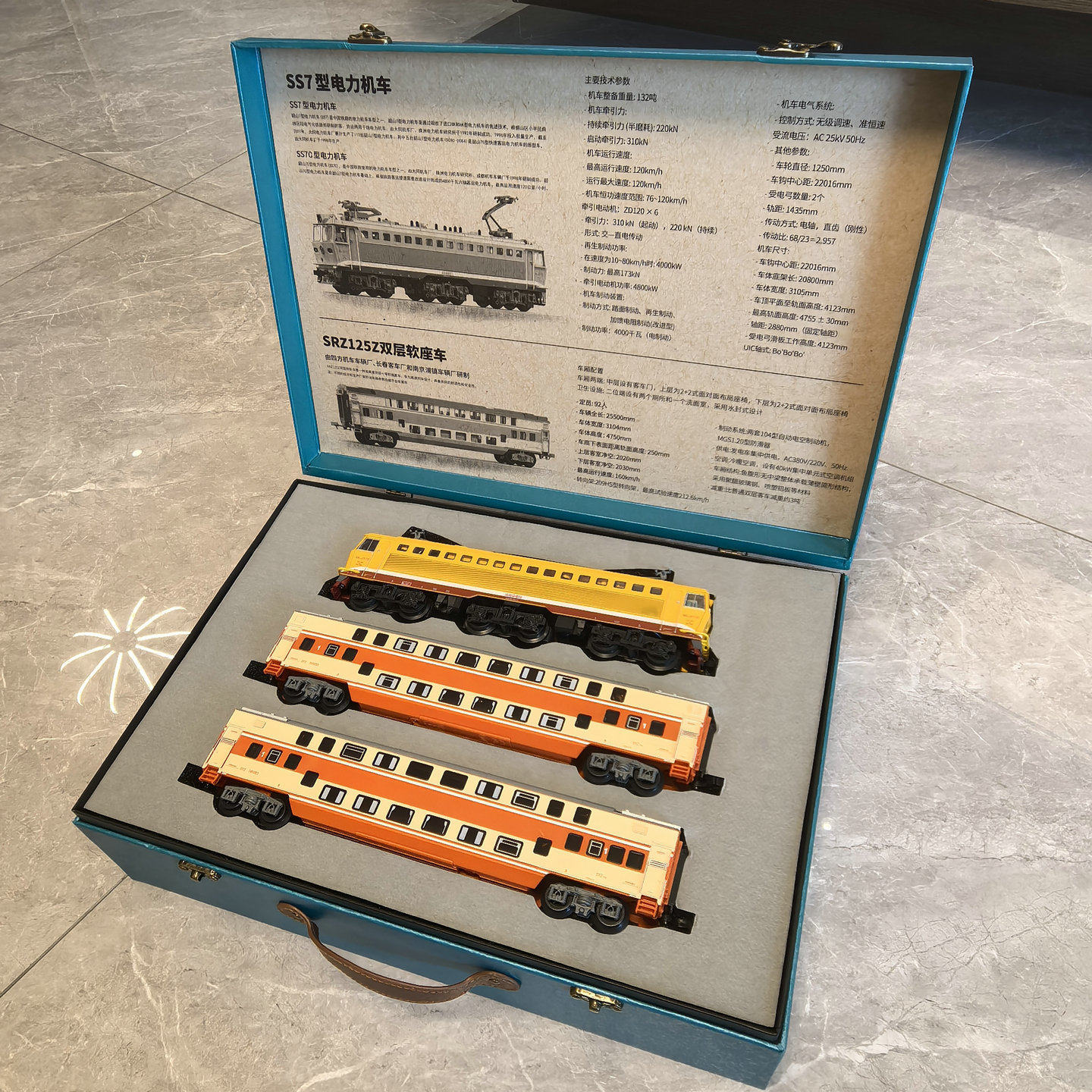 📚 奥乐韶山SS7C型电力机车模型套装仿真轨道小火车双层车厢电动玩具