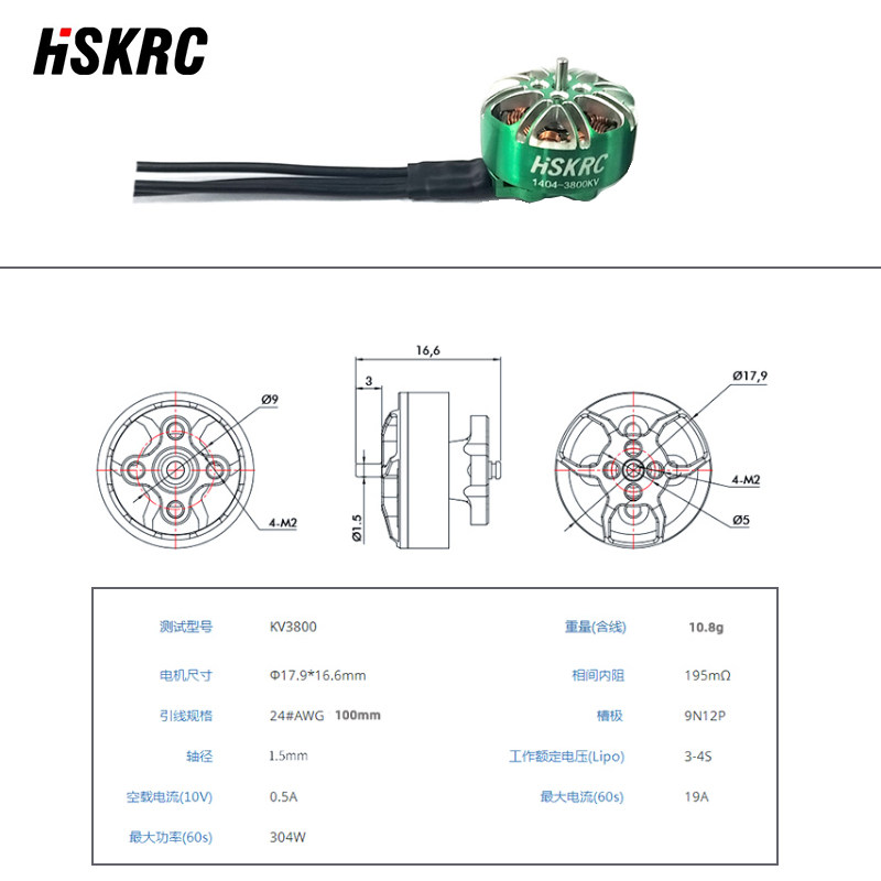 📚 HSKRC 1404 3800KV/4600KV无刷电机 2-3寸涵道花飞 FPV穿越机马达