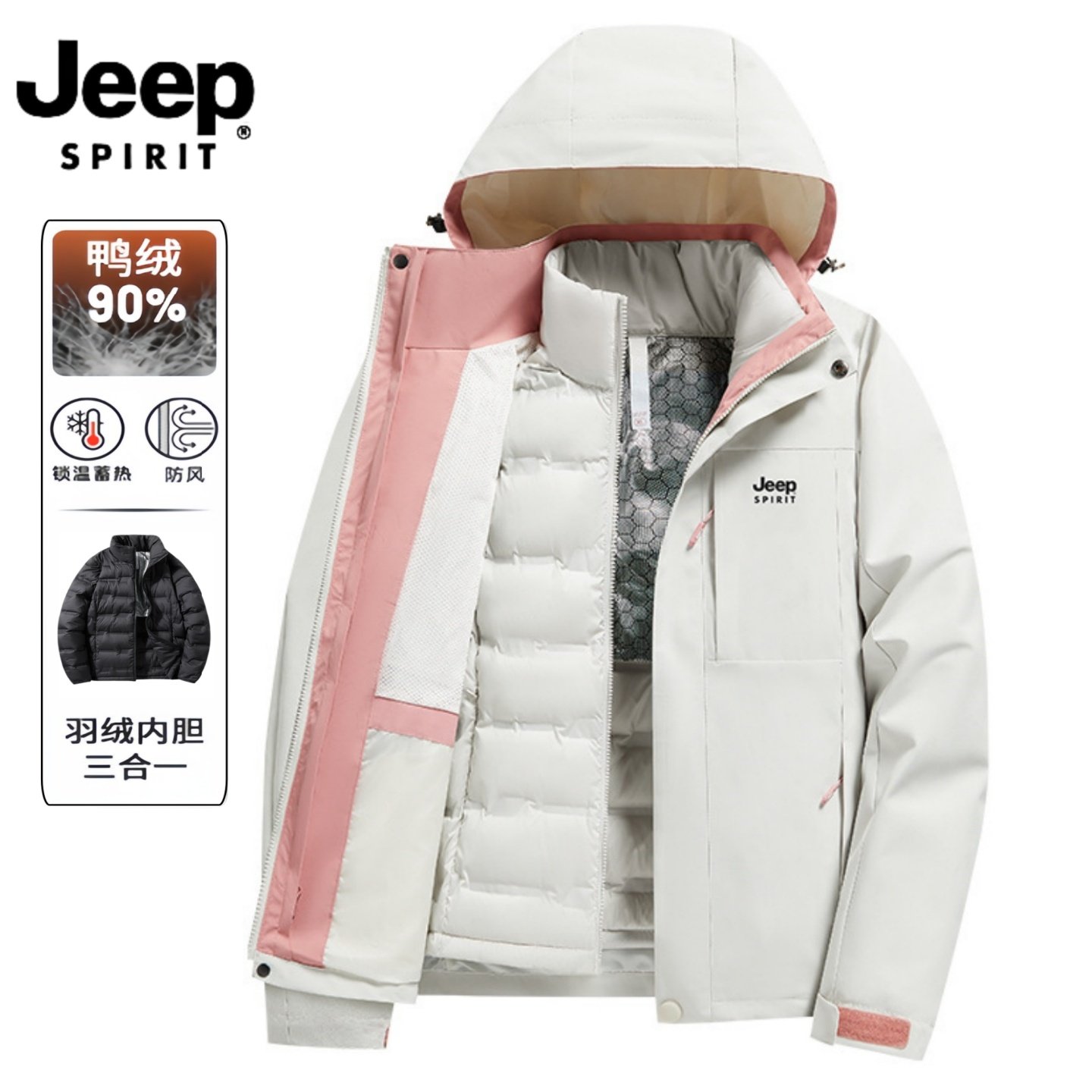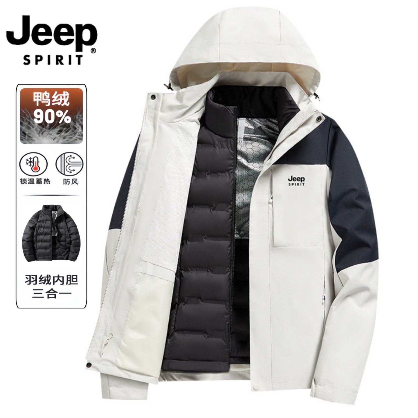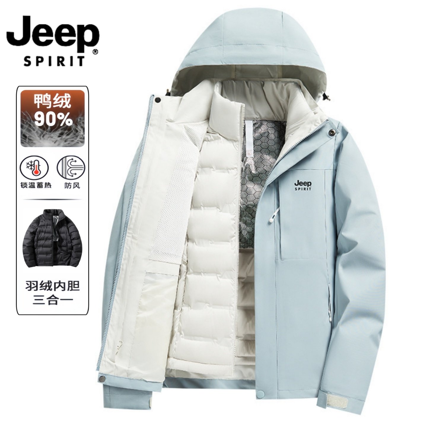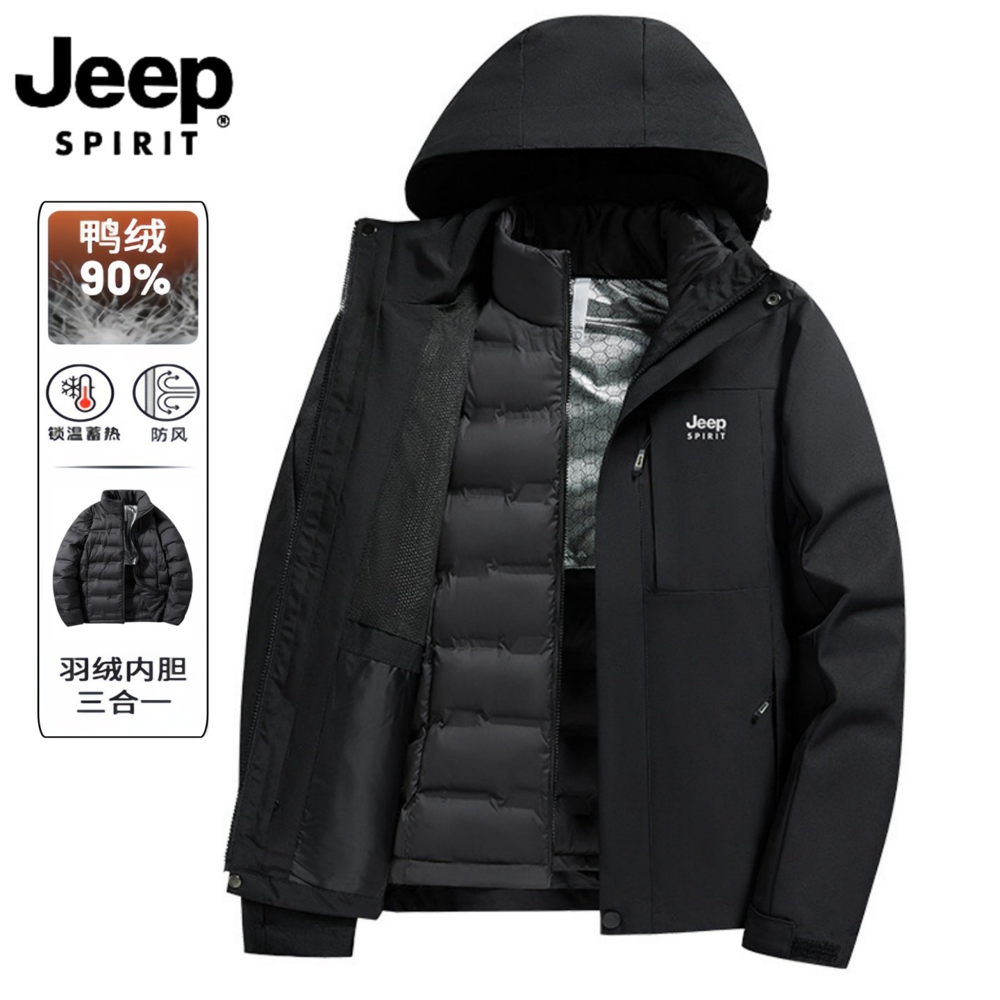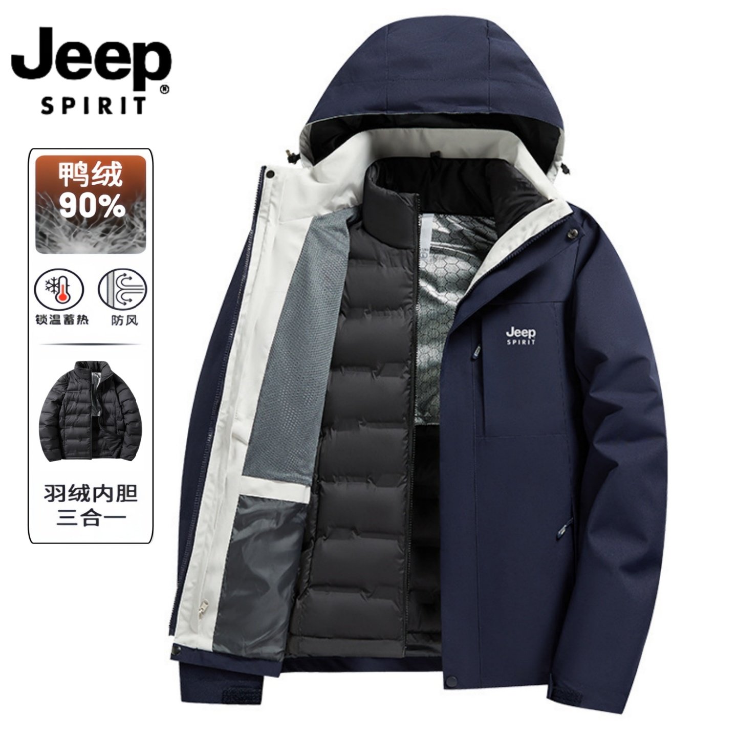 📚 JEEP羽绒冲锋衣外套男款冬季户外三合一可拆卸防风防水休闲夹克男
