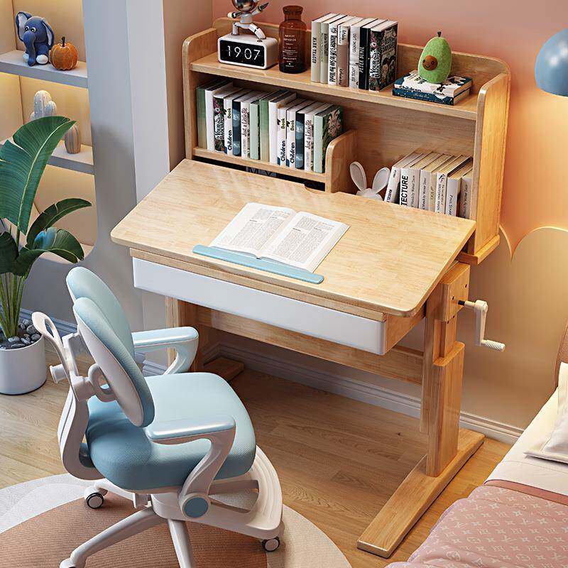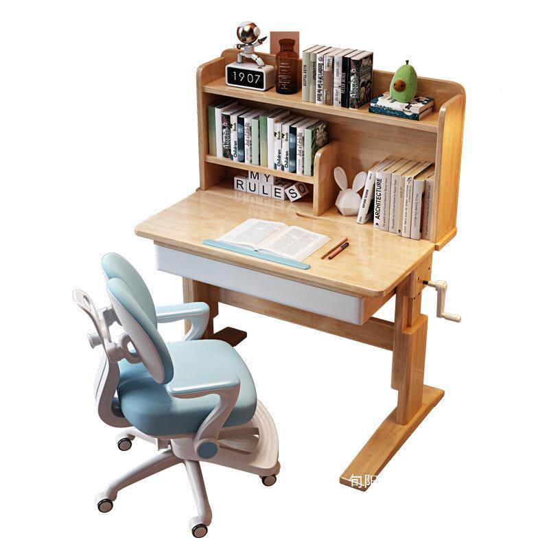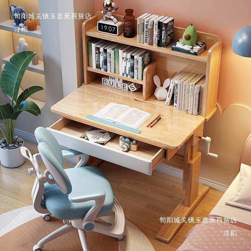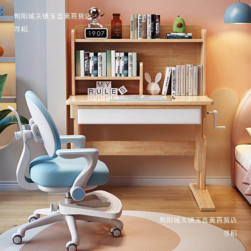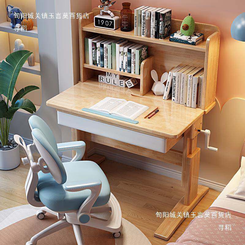 📚 实木学习中儿童书桌椅子可手课摇升降桌小详情客服学生写字台作业