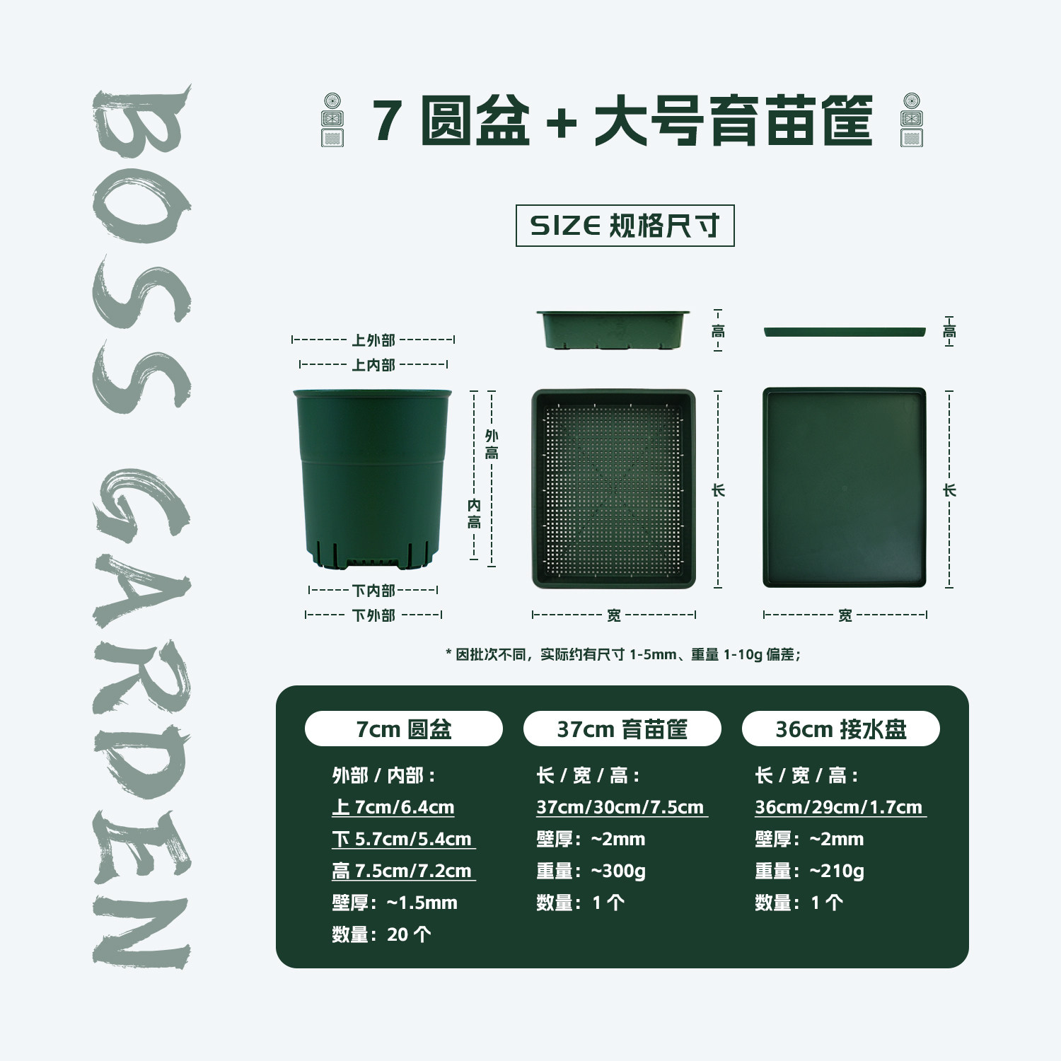 📚 柏实花园PP材质7圆盆大号育苗筐接水盘套装组合多肉花盆多肉种植
