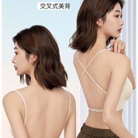 📚 米娅林美背隐形粉底液露背内衣女吊带细肩带聚拢透气文胸外穿抹胸
