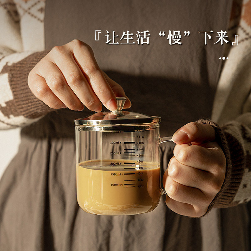 📚 高硼硅玻璃杯水杯家用食品级耐高温杯子牛奶咖啡刻度杯带盖办公室