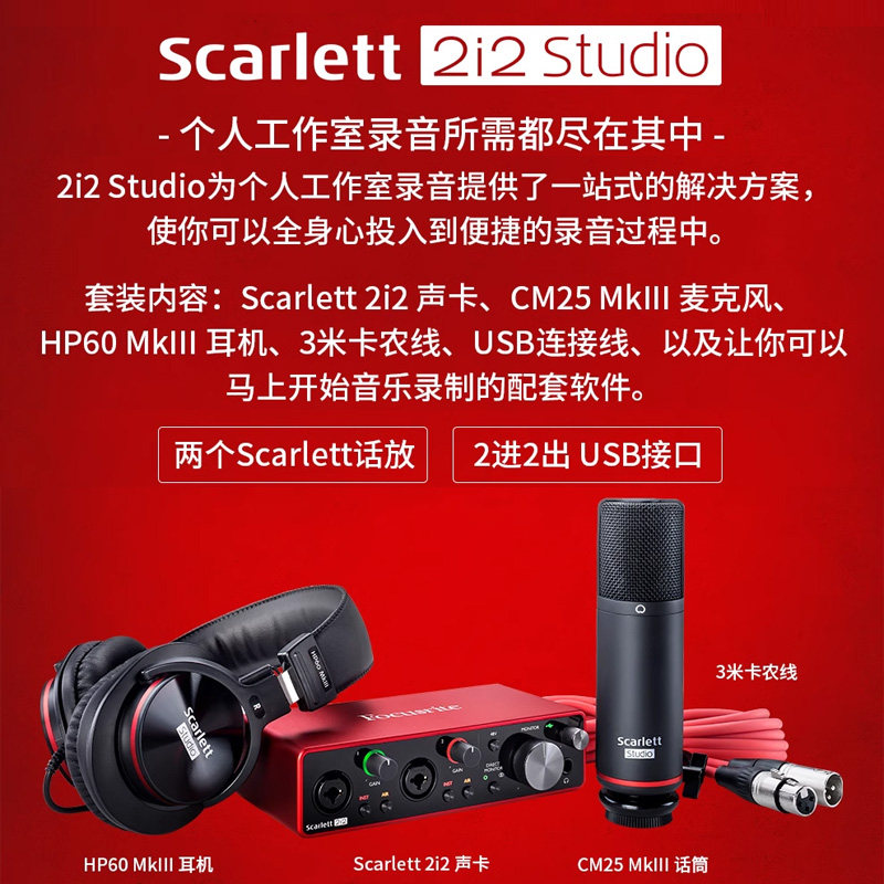 📚 Focusrite福克斯特Scarlett2i2 Studio三代/四代录音声卡话筒套装