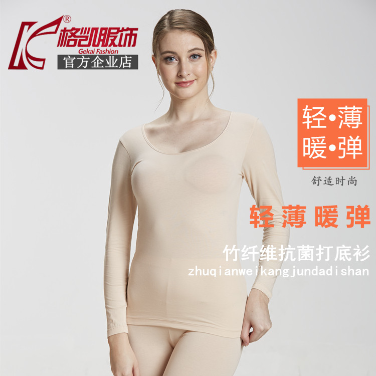 📚 格凯女士竹纤维大低圆领超薄单件上衣贴身保暖内衣秋衣打底棉毛衫