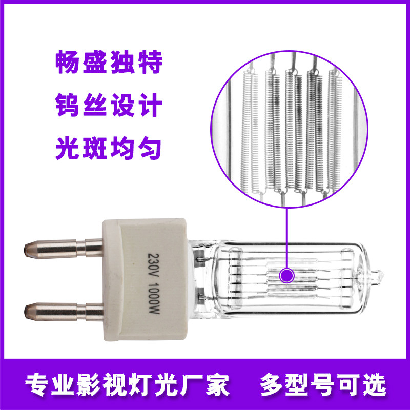 📚 1000W影视聚光灯灯泡 单端暖色摄影棚灯泡 新闻电影G22插脚卤钨泡